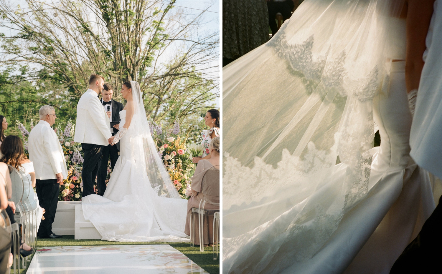 As a designer, so many parts of the wedding were important. For one, the invitation suite really sets the tone for each of my events, so for my own wedding I really cared about this! My invitation suite had so many colors and prints that the guests were going to see at the actual wedding, and I loved this. Another one has to be my dress. I designed the details with Sarah Jameson—we took our time and did not even finalize the gloves until two weeks before because we both wanted to make sure it was perfect. She spent weeks hunting down the lace to make my veil as thick as I envisioned it. My choker was actually made a few weeks before too, after we played with leftover lace from my gloves. It ended up being perfect!!