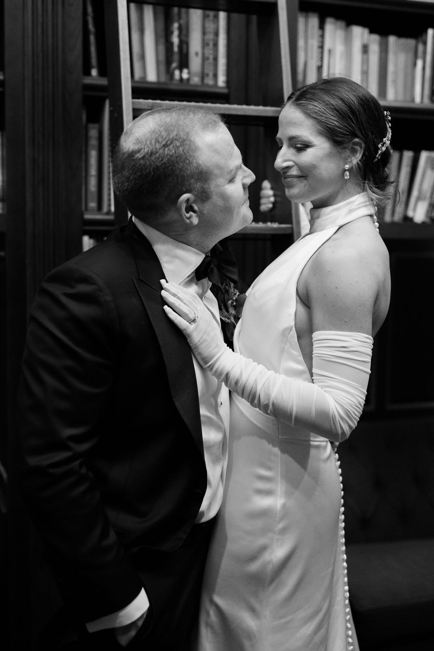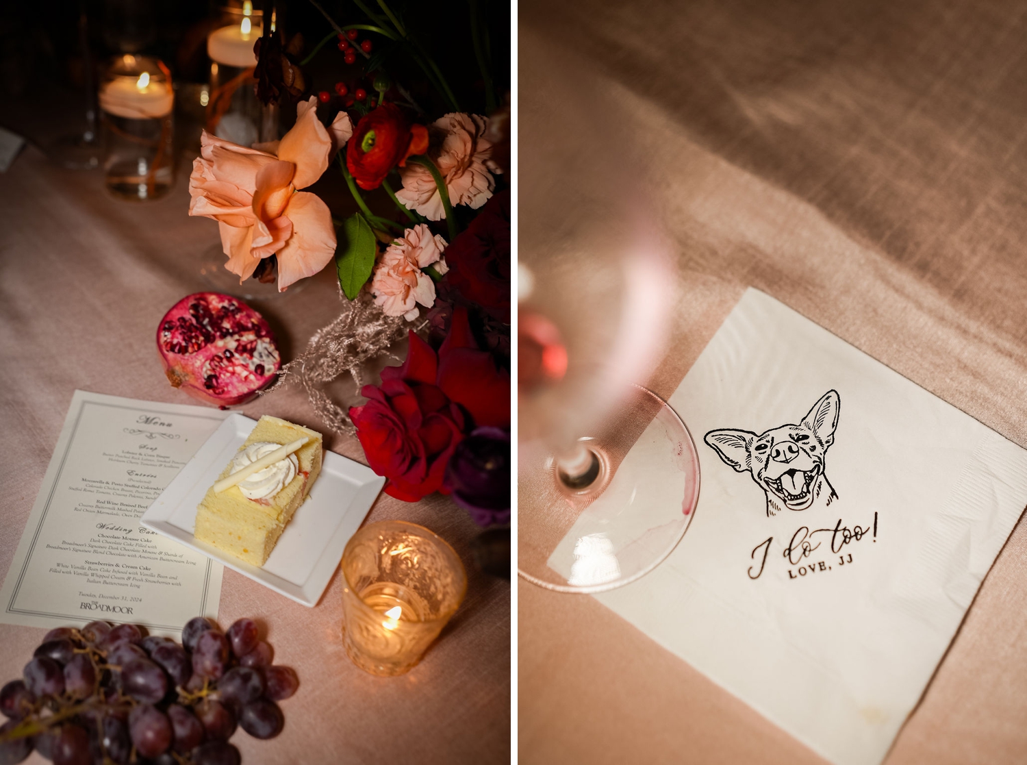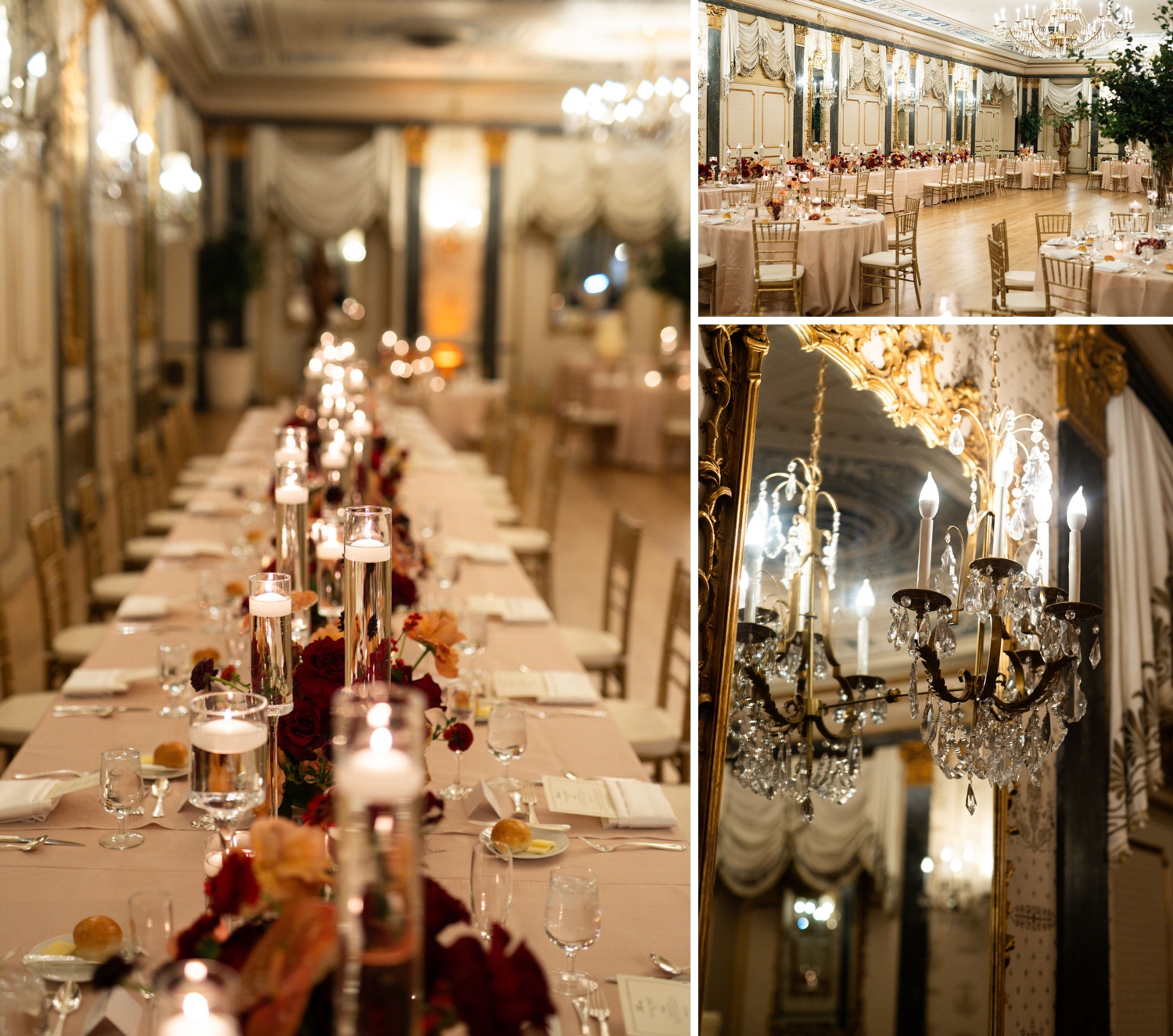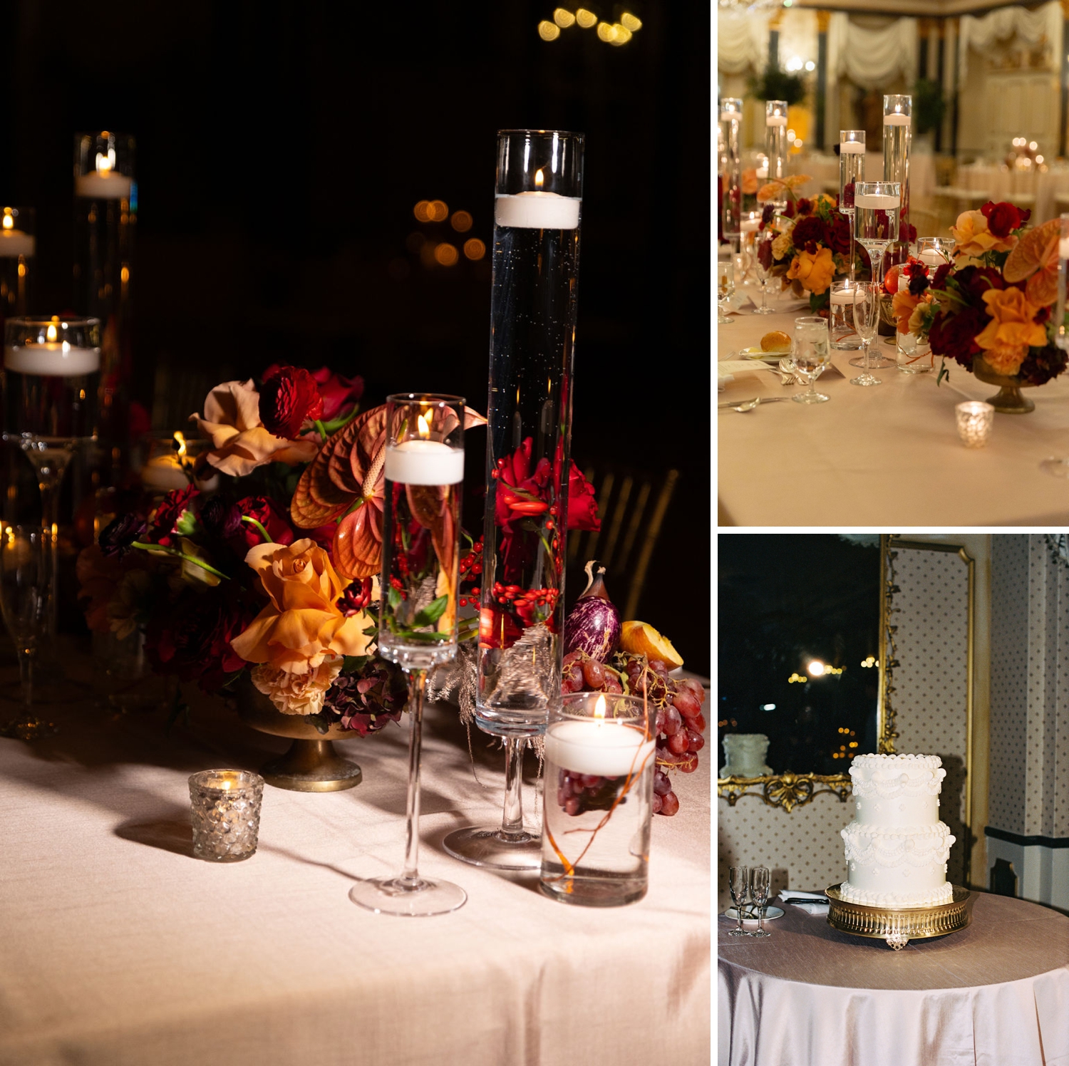 The couple wove family legacy and personal touches throughout the day: Karyn wore her mother’s wedding dress from 44 years ago, and both moms took part in the ceremony alongside a cousin who officiated. Lush red florals, golden glow, and timeless styling brought warmth and romance to the winter night, while a button-back halter gown and opera-length gloves gave Karyn’s bridal look a sophisticated, vintage feel. It was a day filled with joy, reverence, and the sparkle of new beginnings.