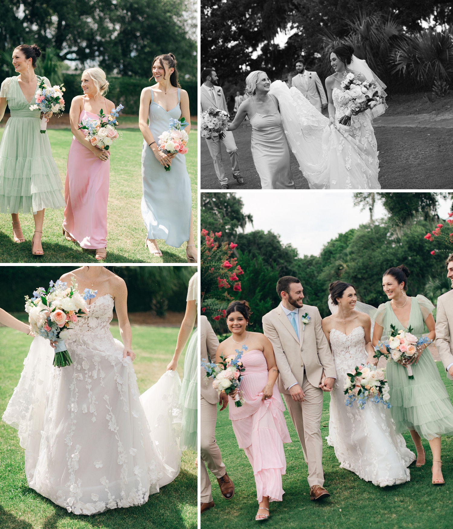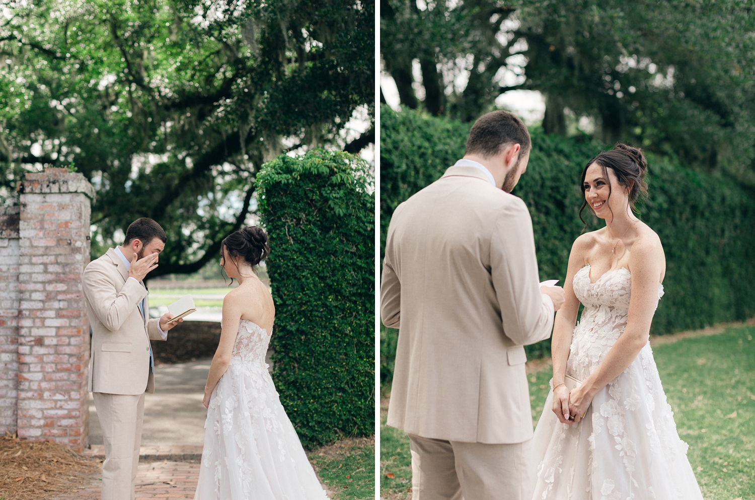 Caitlyn chose mismatched pastel gowns for her bridesmaids, perfectly complementing the soft floral arrangements they designed themselves just days before the celebration. One of the sweetest moments came during Caitlyn and Jon’s first look, where they shared private vows filled with emotion and authenticity. Their heartfelt ceremony took place under a sprawling oak draped with Spanish moss, followed by a joyful reception inside where family and friends gathered to toast, dance, and celebrate late into the night.