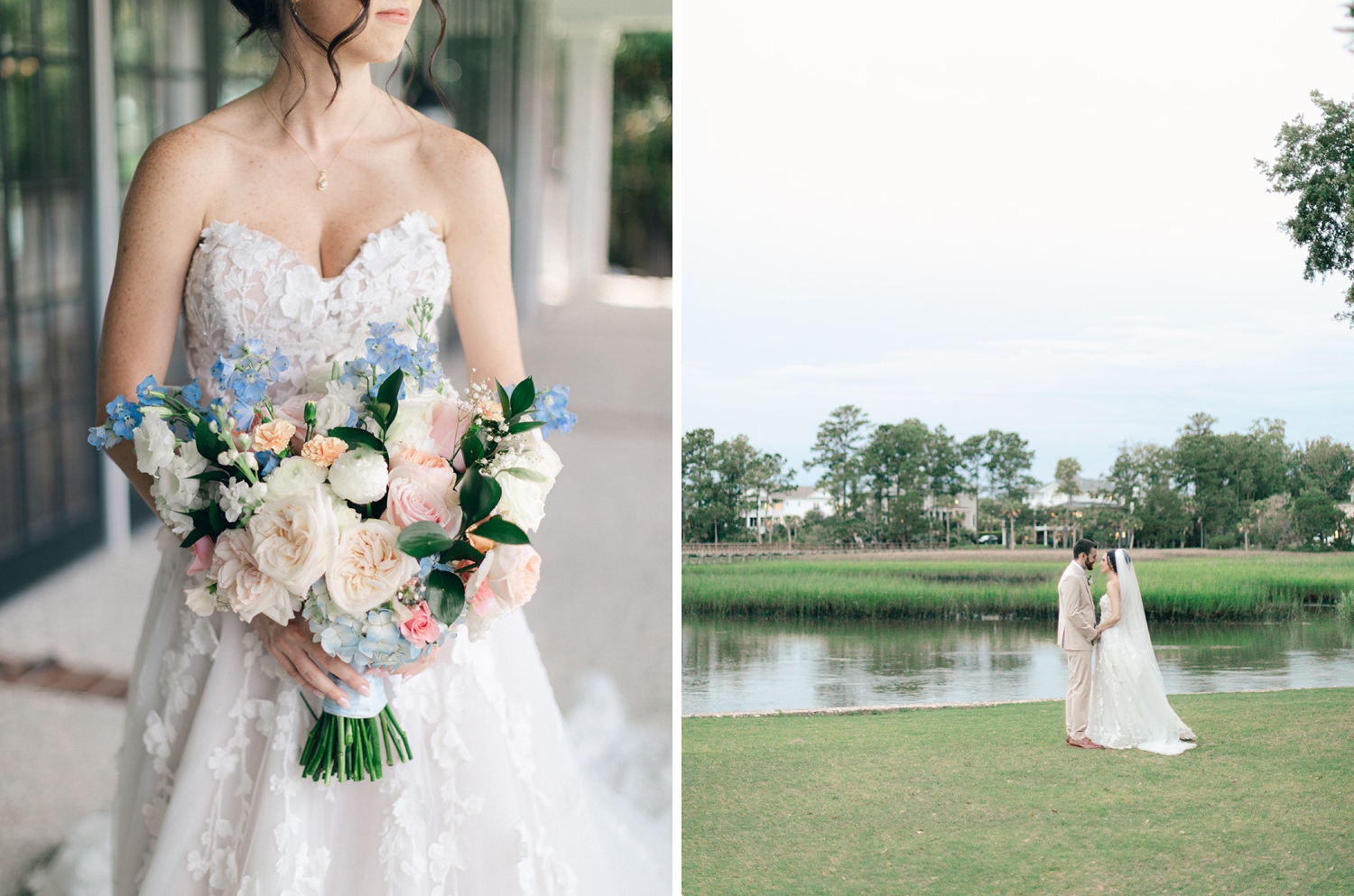 High school sweethearts Caitlyn and Jon celebrated their love with the most romantic South Carolina wedding right outside of Charleston. Their waterfront venue, Dunes West Golf and River Club, was framed by quintessential live oaks and serene river views—an unforgettable setting for a destination wedding.