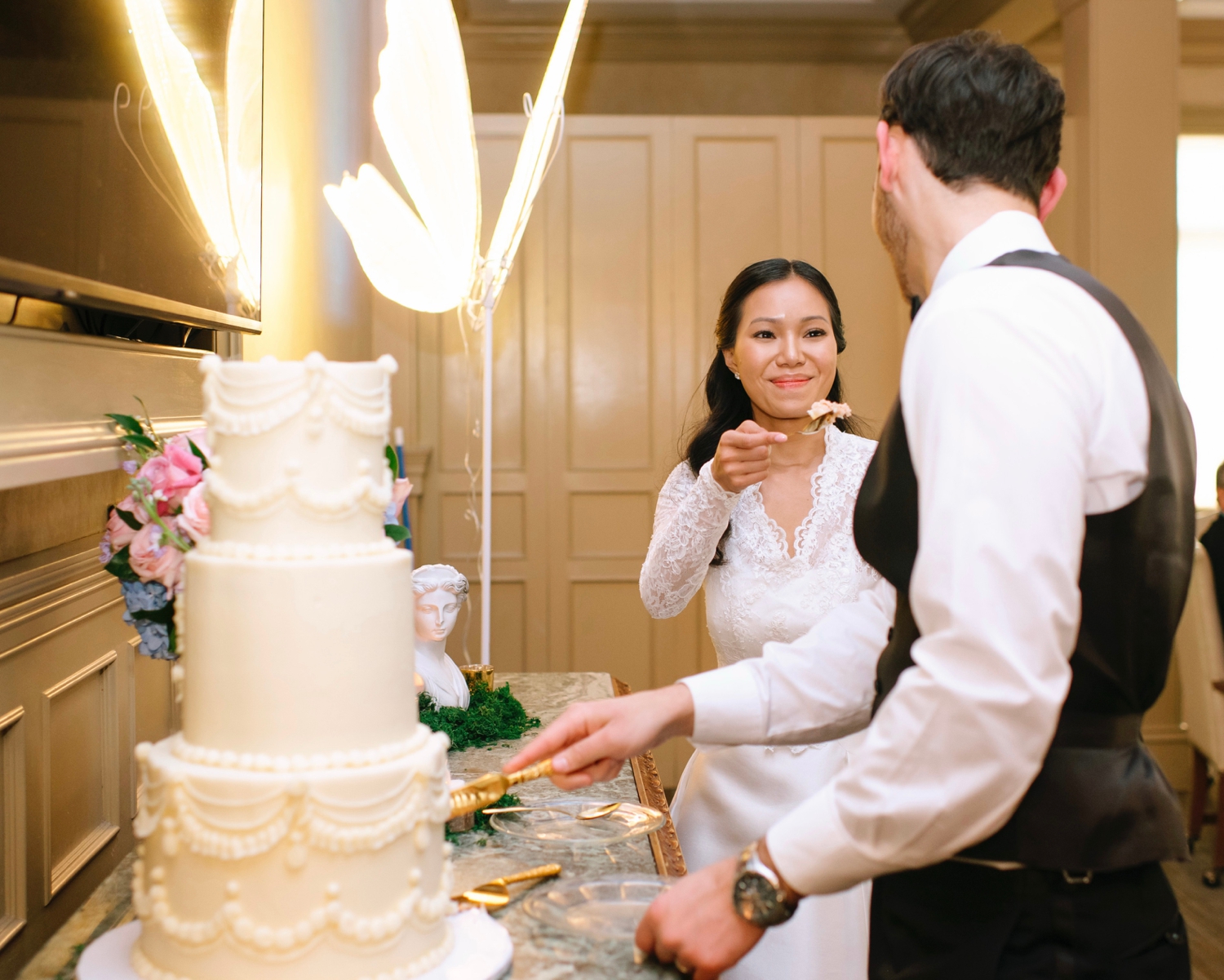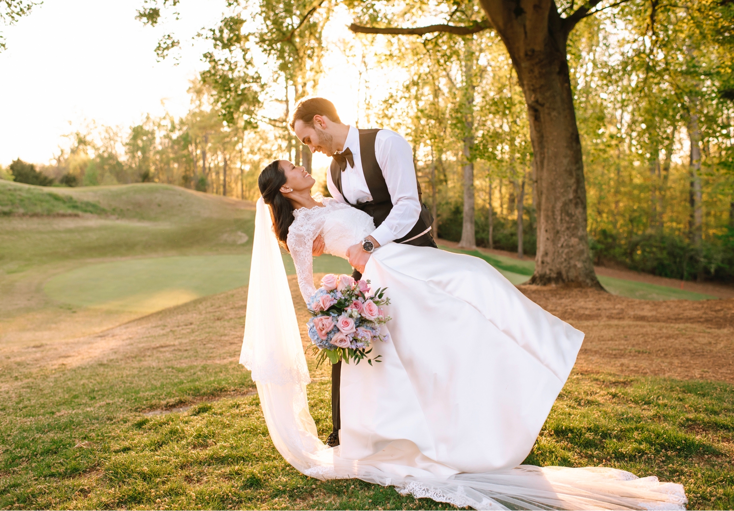 From Caroline’s elegant gown from Loveliest Bridal, paired with a delicate lace topper from The Perfect Fit, to the lush arrangements by Echelon Florist, every element reflected a sense of understated beauty. The day flowed effortlessly from a joy-filled ceremony to a reception filled with laughter, music, and golden light — a celebration that felt both intimate and grand, timeless yet deeply personal.