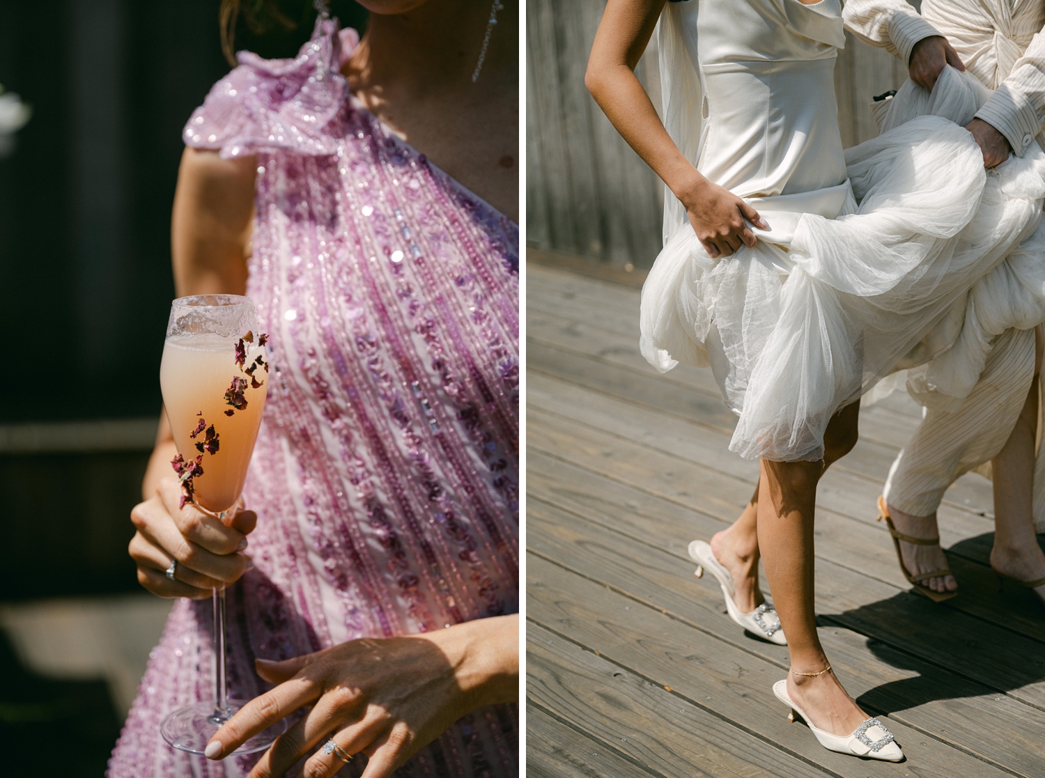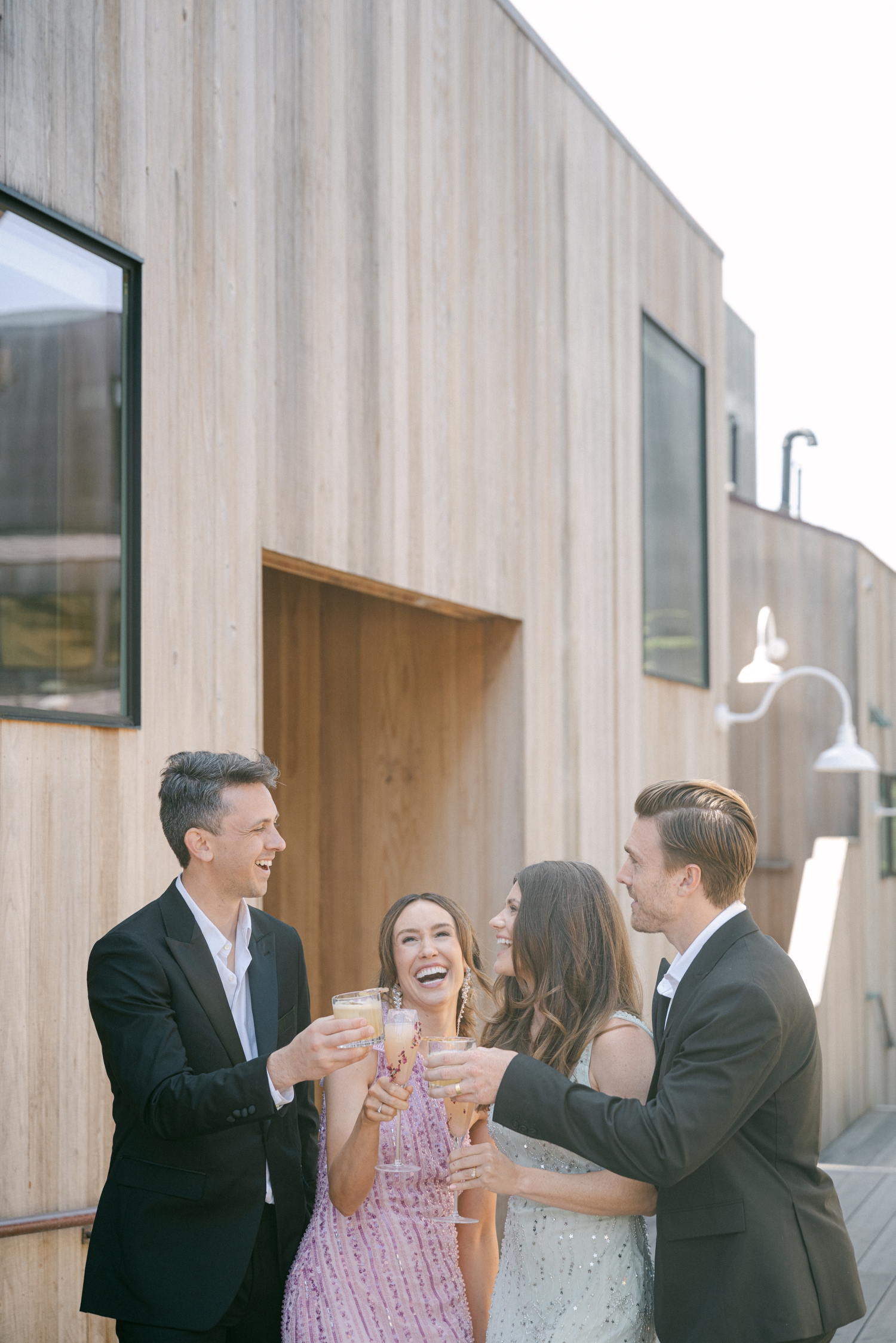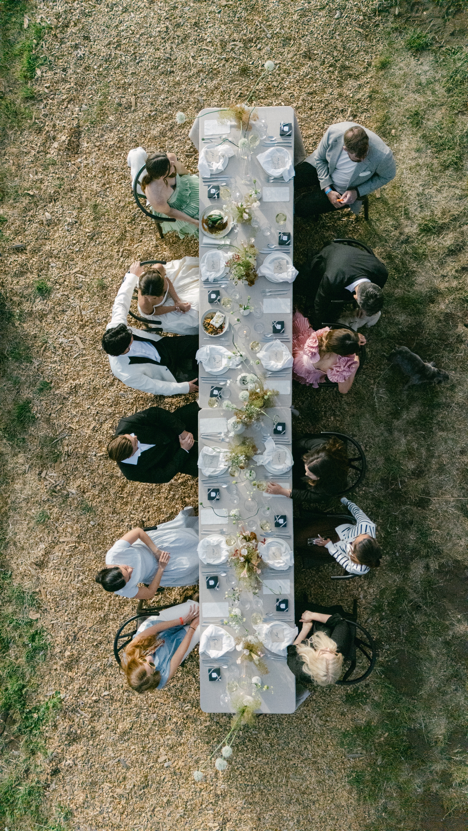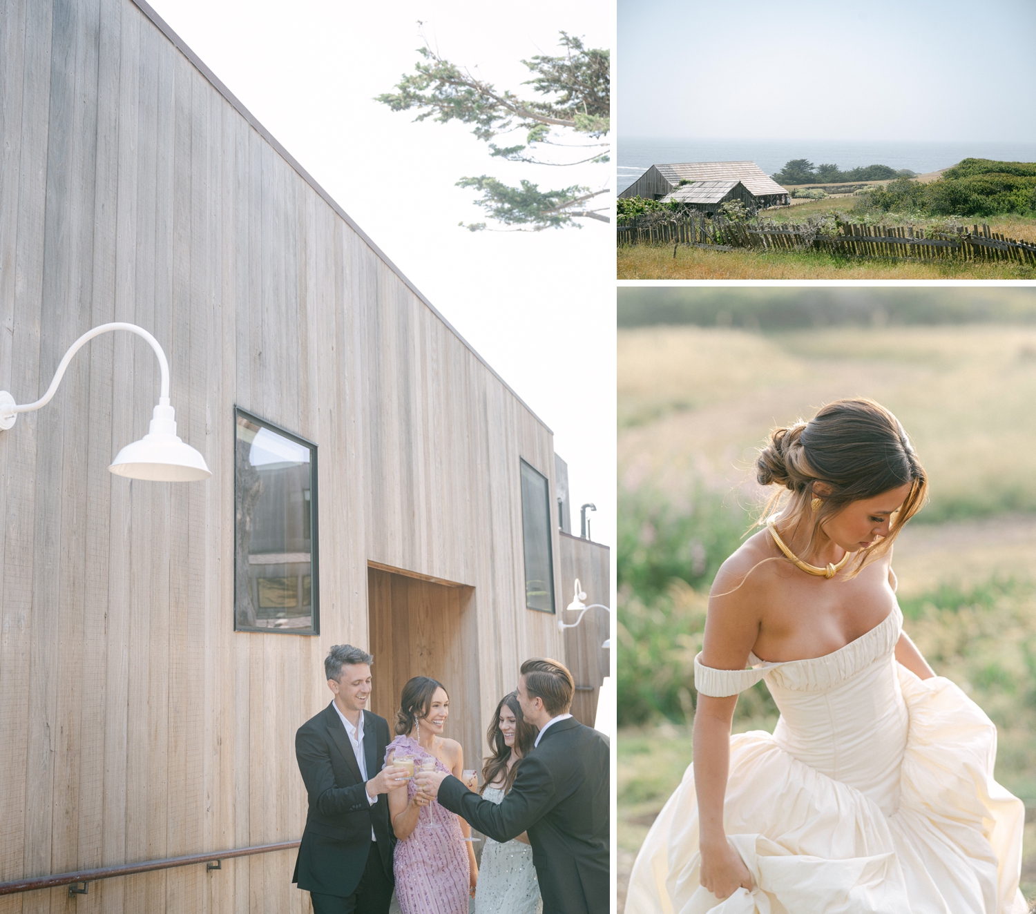 As golden hour gave way to dusk, the evening gathered around a candlelit table layered with mismatched linens, bowls of figs and stone fruit, and soft laughter under the first stars. Every detail — from a custom botanical wedding perfume to Super 8 footage woven into the gallery — reflected a love rooted in memory, wanderlust, and quiet romance. Subtle, soulful, and entirely their own, this Sea Ranch celebration was less a wedding and more a feeling — one meant to be carried long after the tide receded.