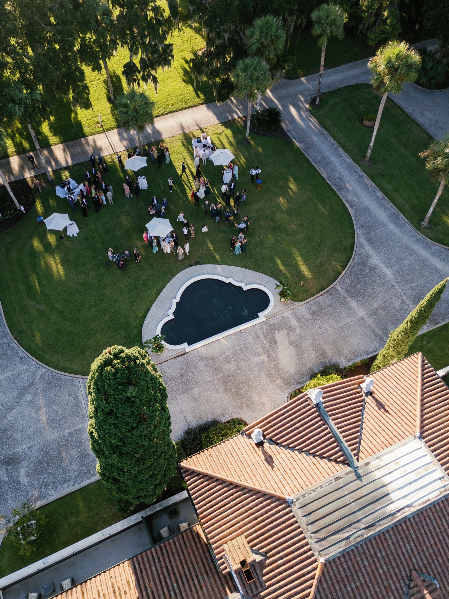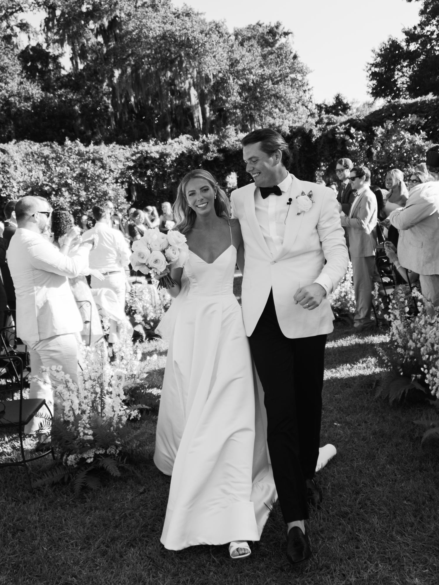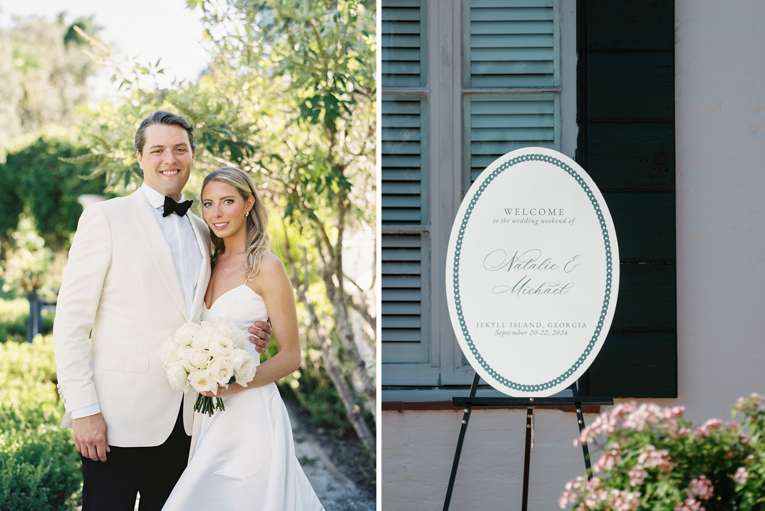 Natalie and Mike’s wedding at the Jekyll Island Club Resort blended coastal charm with timeless Southern elegance. The couple exchanged vows in a serene al fresco ceremony framed by palm trees and soft ocean breezes, allowing the historic beauty of the property to take center stage. Lush aisle florals and simple pillar arrangements added just the right touch of romance without overwhelming the space.