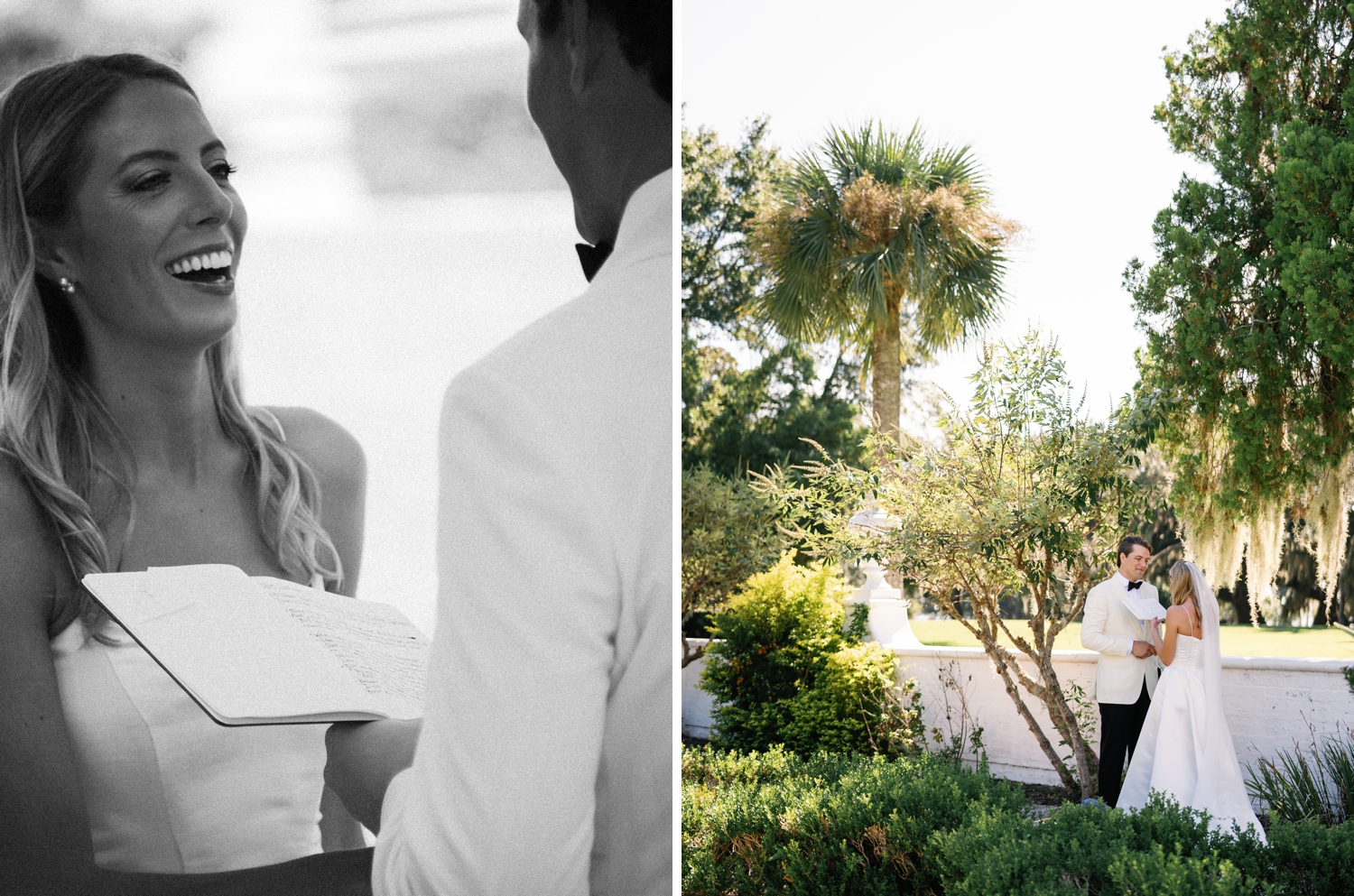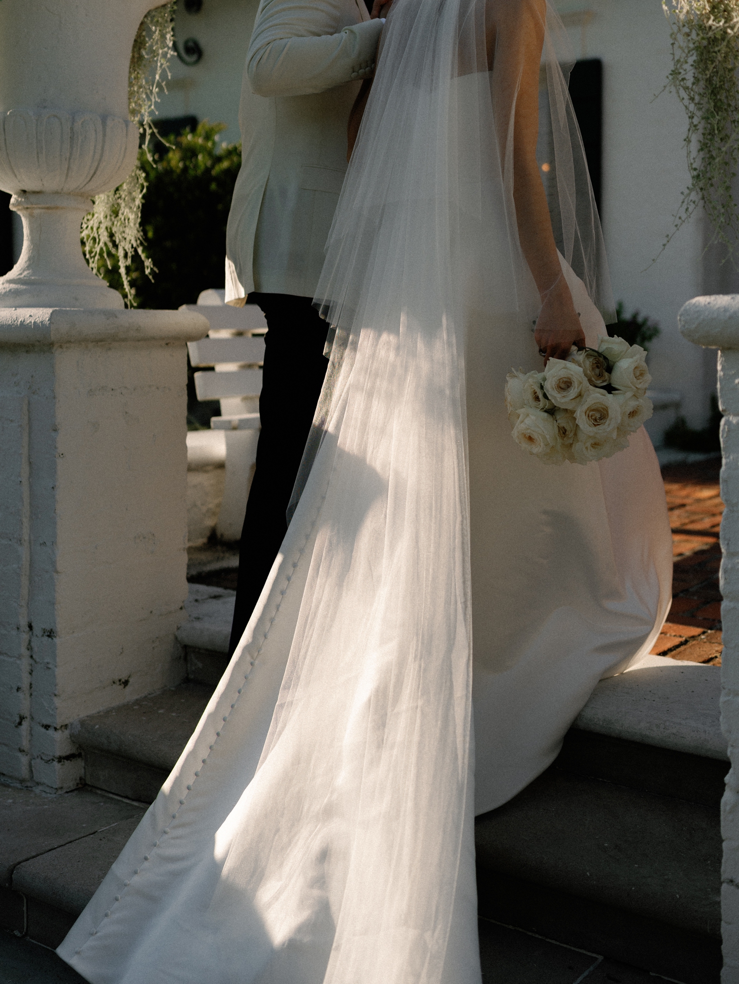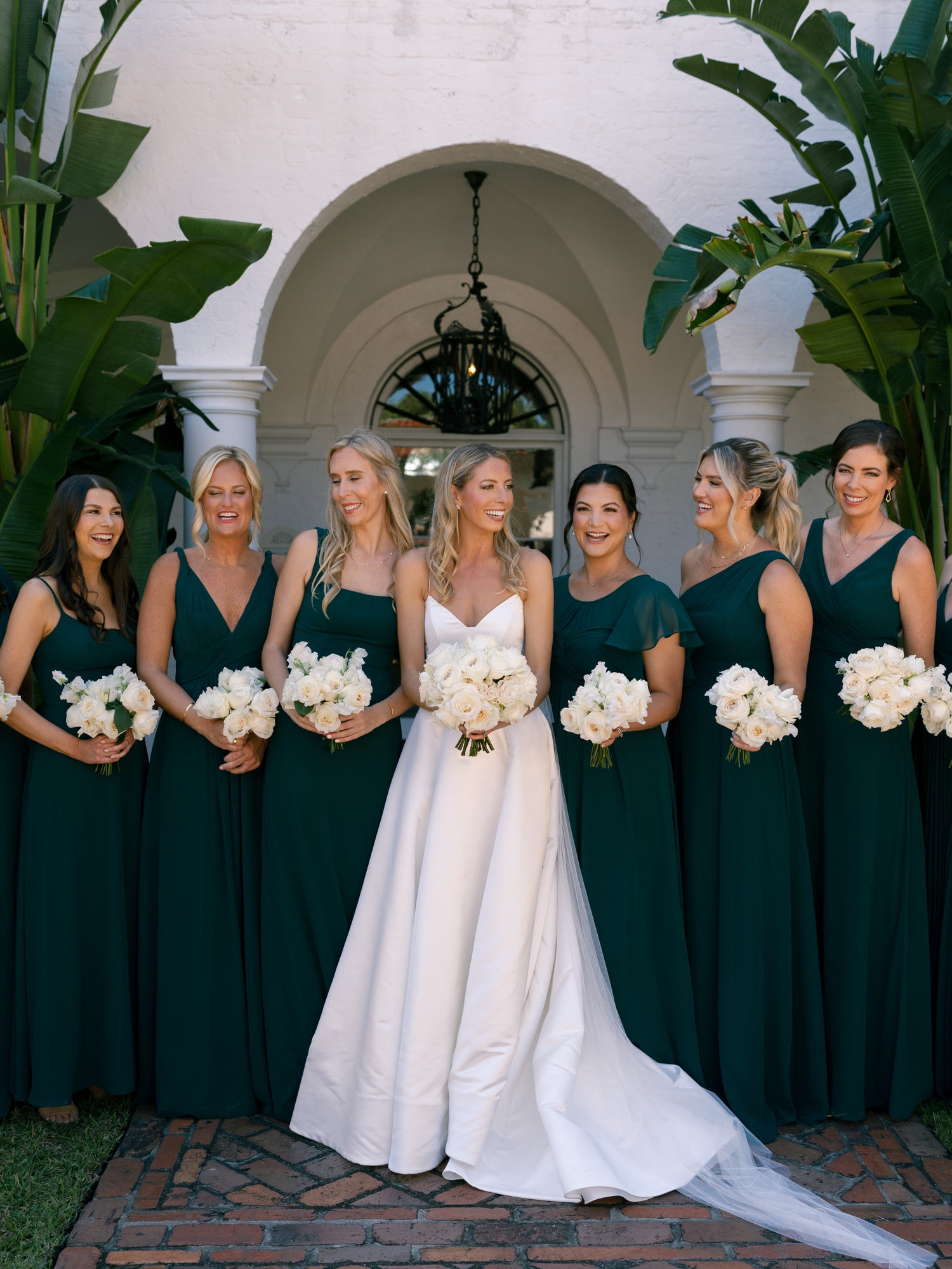 Natalie and Mike’s wedding at the Jekyll Island Club Resort blended coastal charm with timeless Southern elegance. The couple exchanged vows in a serene al fresco ceremony framed by palm trees and soft ocean breezes, allowing the historic beauty of the property to take center stage. Lush aisle florals and simple pillar arrangements added just the right touch of romance without overwhelming the space.