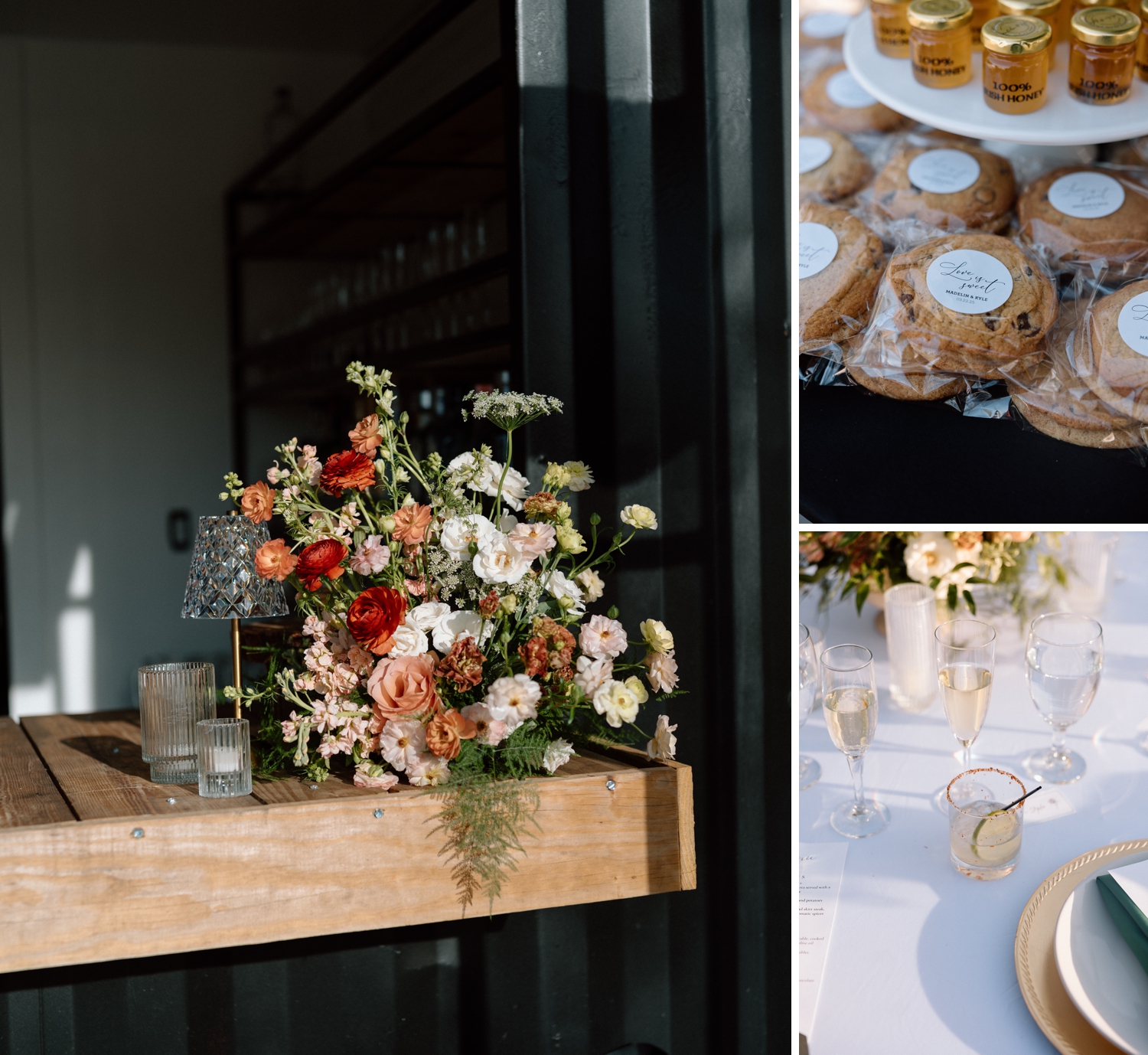 We had Kyle’s brother Corey officiate our wedding! Kyle and Corey have always been close and Corey, his wife Nikki, and the two of us have gotten to spend a lot of time together over the past few years. Madelin’s mom (a former baker) couldn’t pass up the opportunity to whip up 200 cookies as wedding favors. Madelin’s Aunt Barbara keeps bees in Ireland and shipped 100 jars of honey as wedding favors. We also had our dog Guinness on our cocktail napkins—he was 16 years old and a fan-favorite among Kyle’s college friends. It was really fun to have those little personal touches that made our day unique to us.