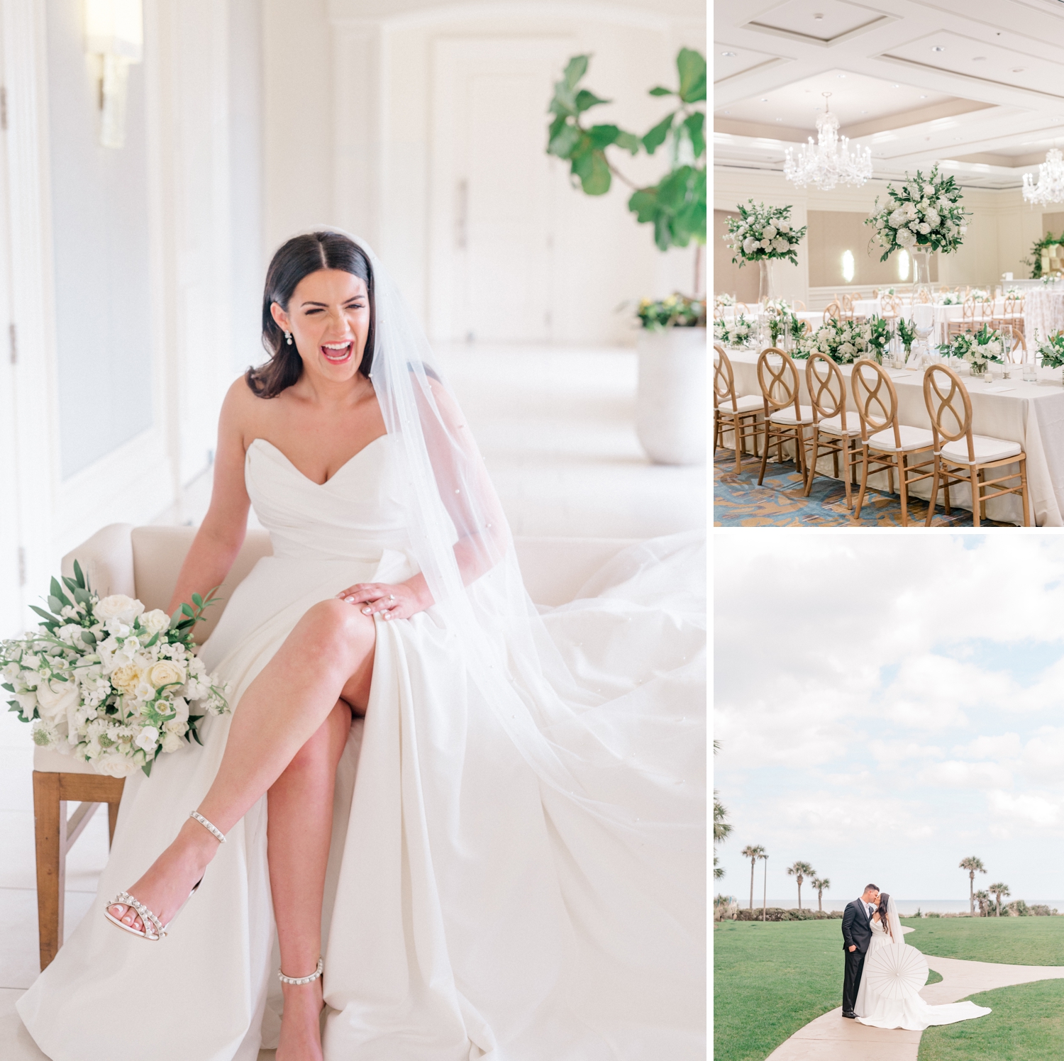 Laura and Jack’s wedding day was a refined coastal celebration that blended modern sophistication with classic romance, all set against the serene oceanfront backdrop of The Ritz-Carlton Amelia Island. Neutral tones, organic florals, and soft coastal light framed the day with an effortless elegance, while subtle pearl details added layers of understated glamour throughout the design.