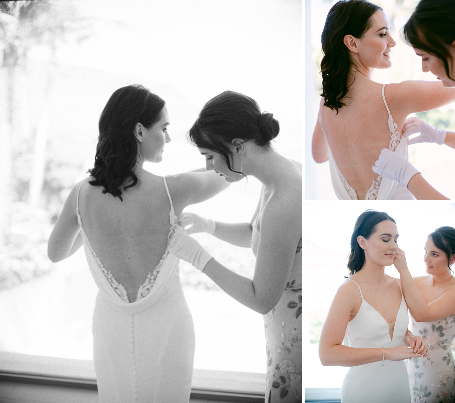 The night before our wedding, my mom, sister, and sister-in-law gifted me my “something” items, including a locket with photos of each of my grandmothers—women I was very close to growing up. I pinned it to my bouquet, so they could walk with me down the aisle.