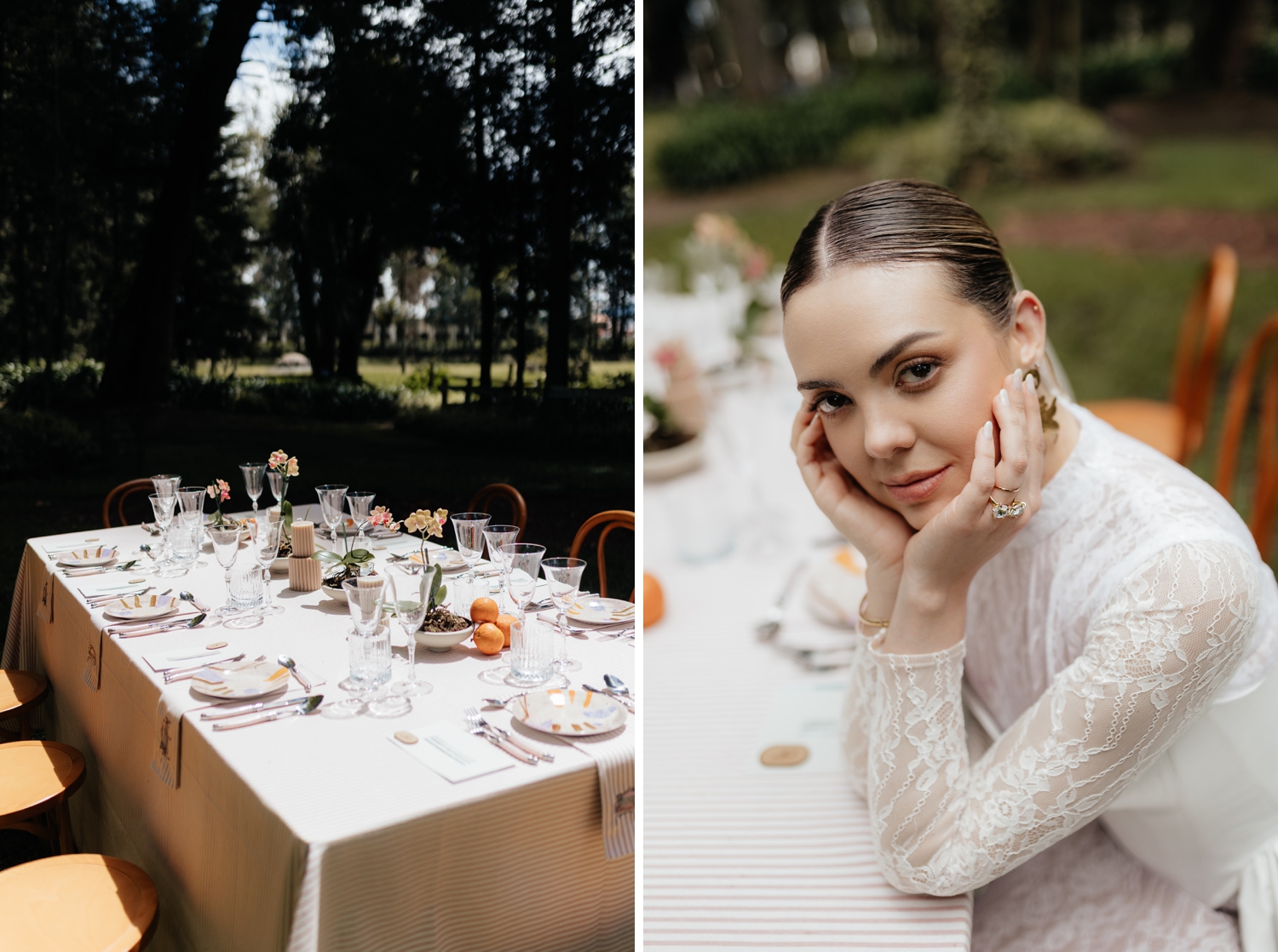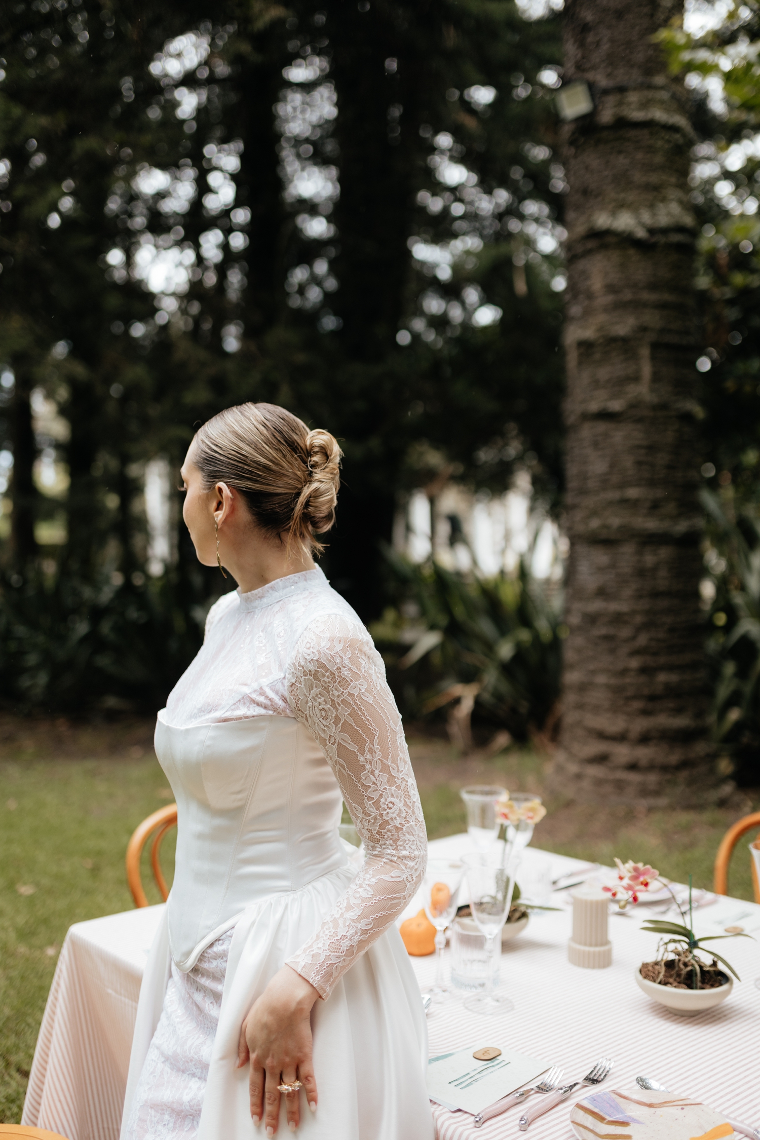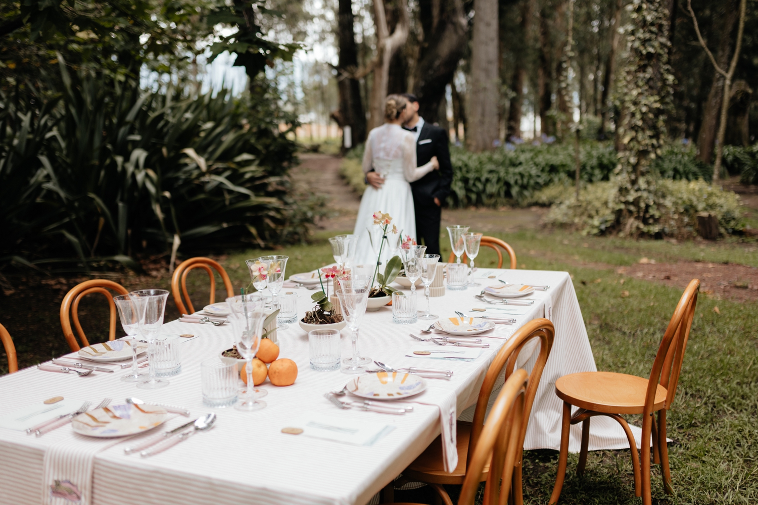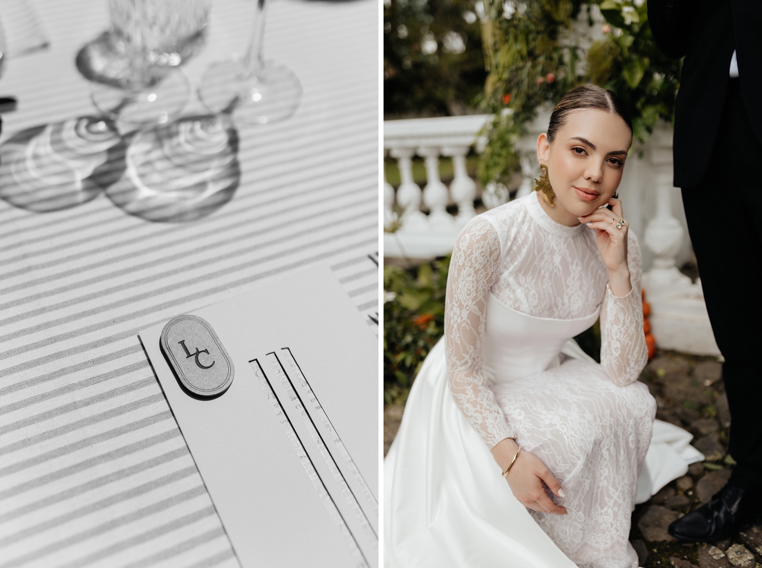 Luciana’s gown echoed the same balance — a princess-like silhouette grounded by a striking corset that added a modern edge. Ancestral Ecuadorian jewelry by designer Luz Marina completed the look, honoring heritage while reinforcing the shoot’s deeply intentional design story. Set beneath open skies and surrounded by lush gardens, the vow renewal was both intimate and expansive, reflective of Ecuador’s growing presence as a destination for uniquely styled, art-driven celebrations.