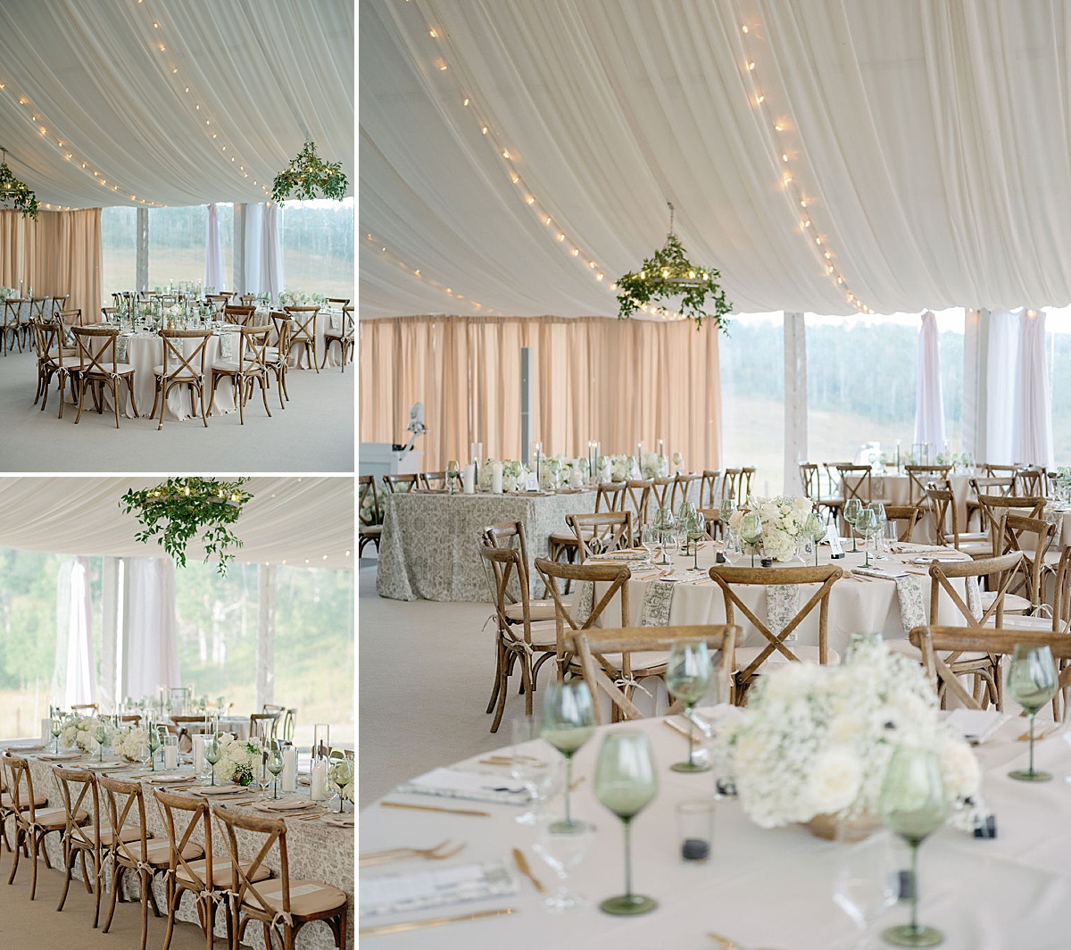With 200 guests traveling from across the country, the weekend was thoughtfully curated as a true experience—one that invited connection, celebration, and presence. The ceremony setting leaned into the quiet beauty of the outdoors, while the reception introduced a more polished, ballroom-inspired atmosphere, creating a layered celebration that felt both grounded and grand.