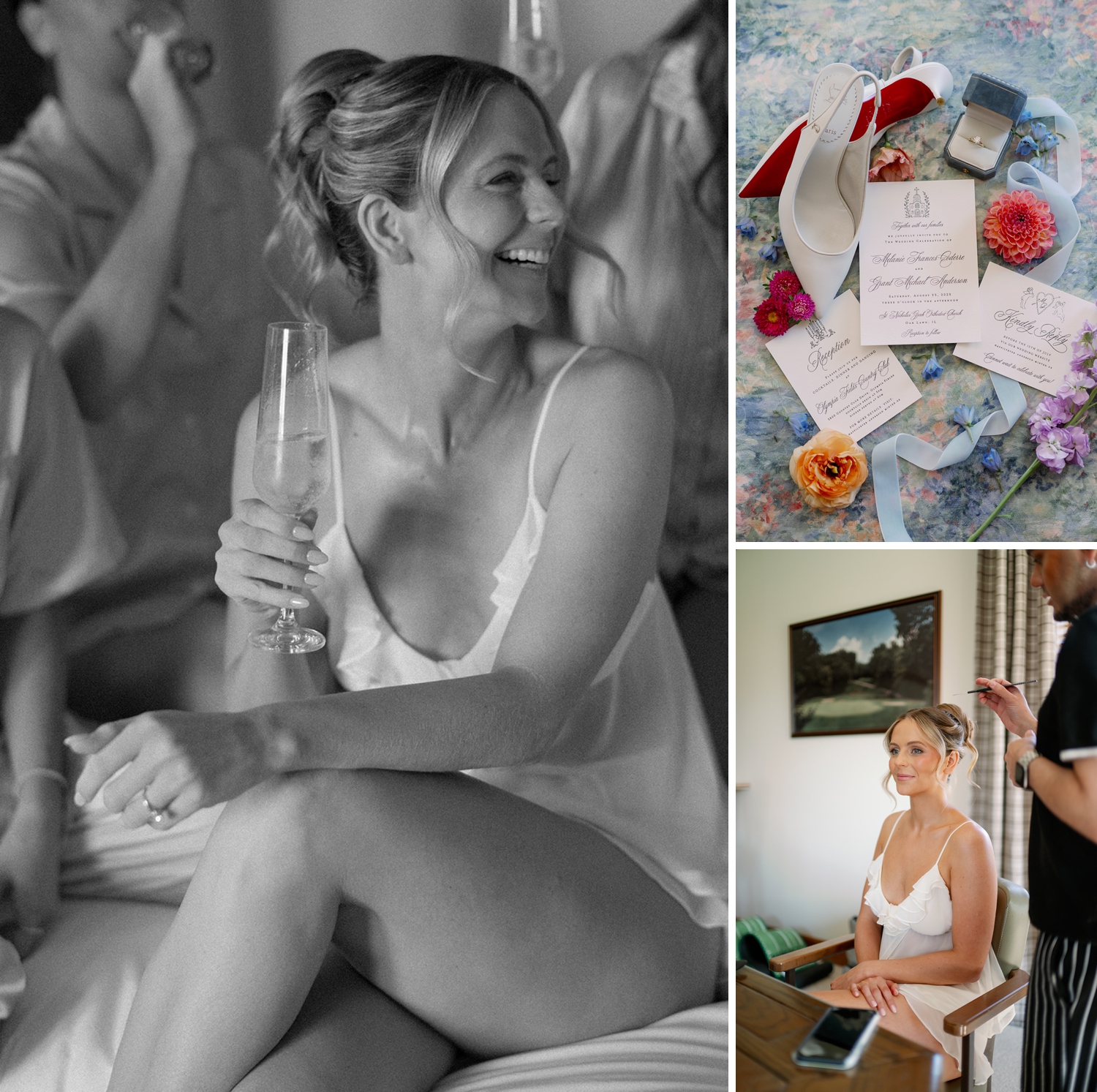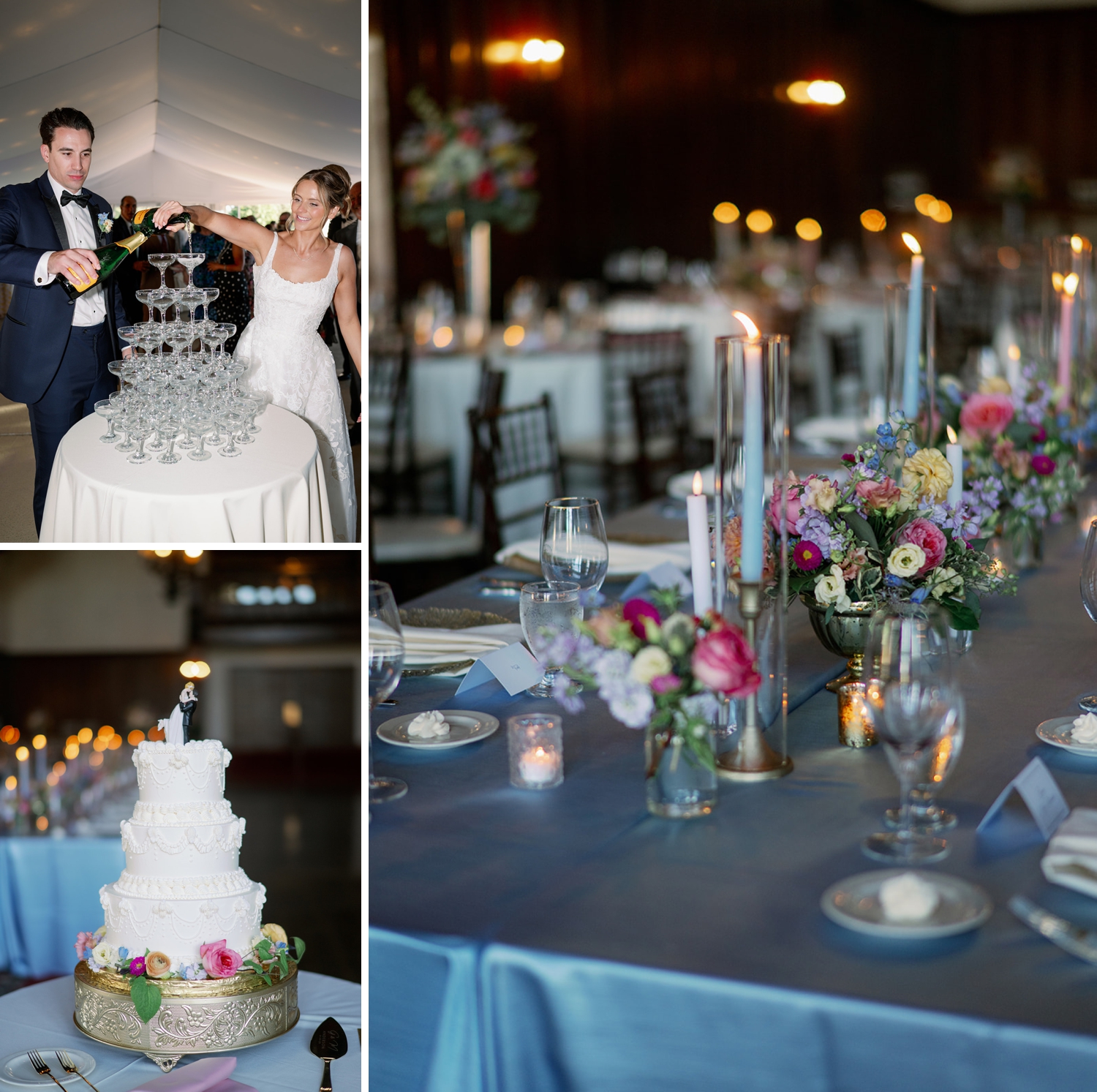 Melanie and Grant Anderson’s August wedding blended classic country club elegance with meaningful cultural tradition. Hosted at Olympia Fields Country Club, their day unfolded in a romantic palette of soft blues, blush pinks, and warm gold accents that created a refined yet welcoming atmosphere.