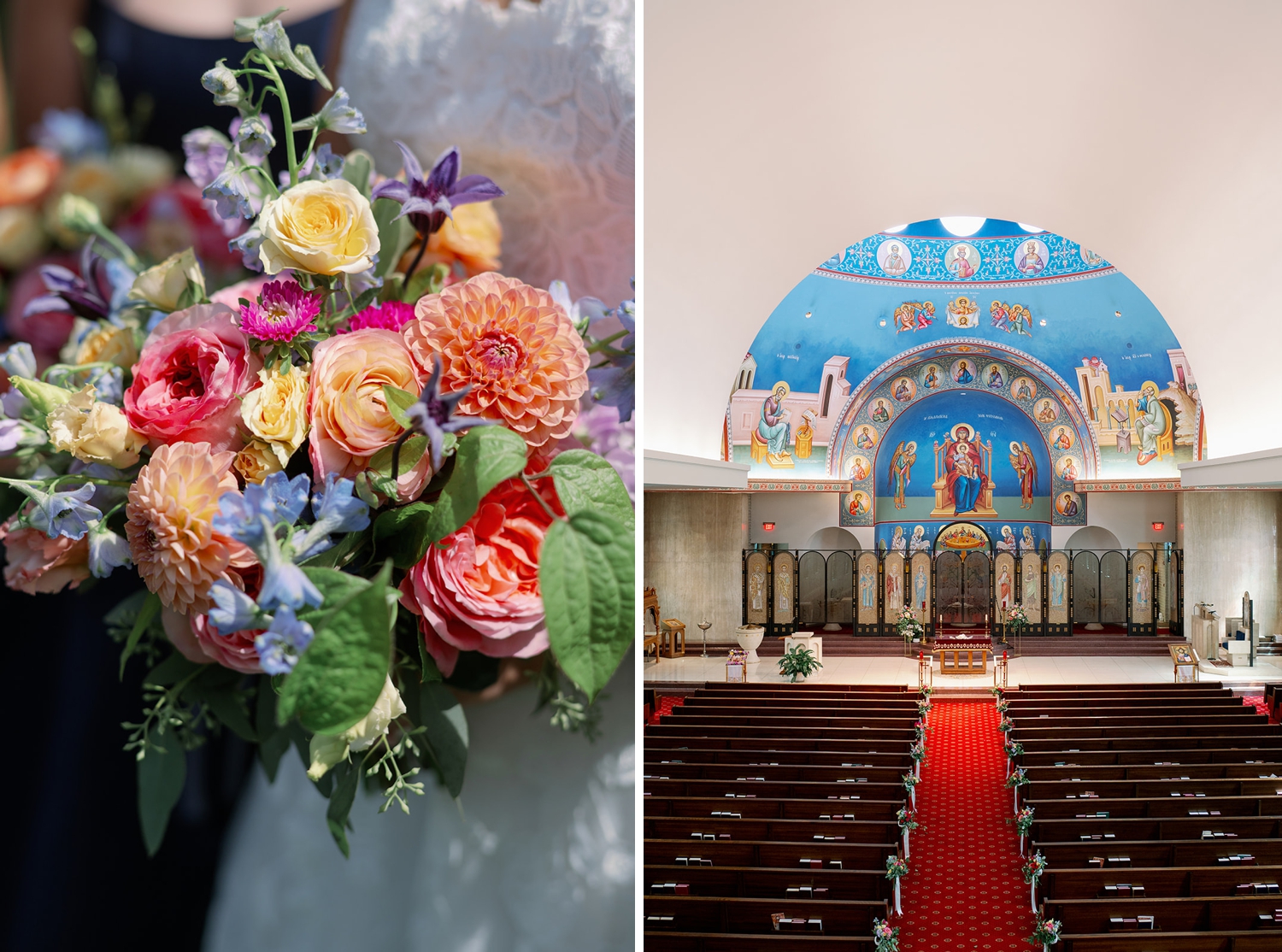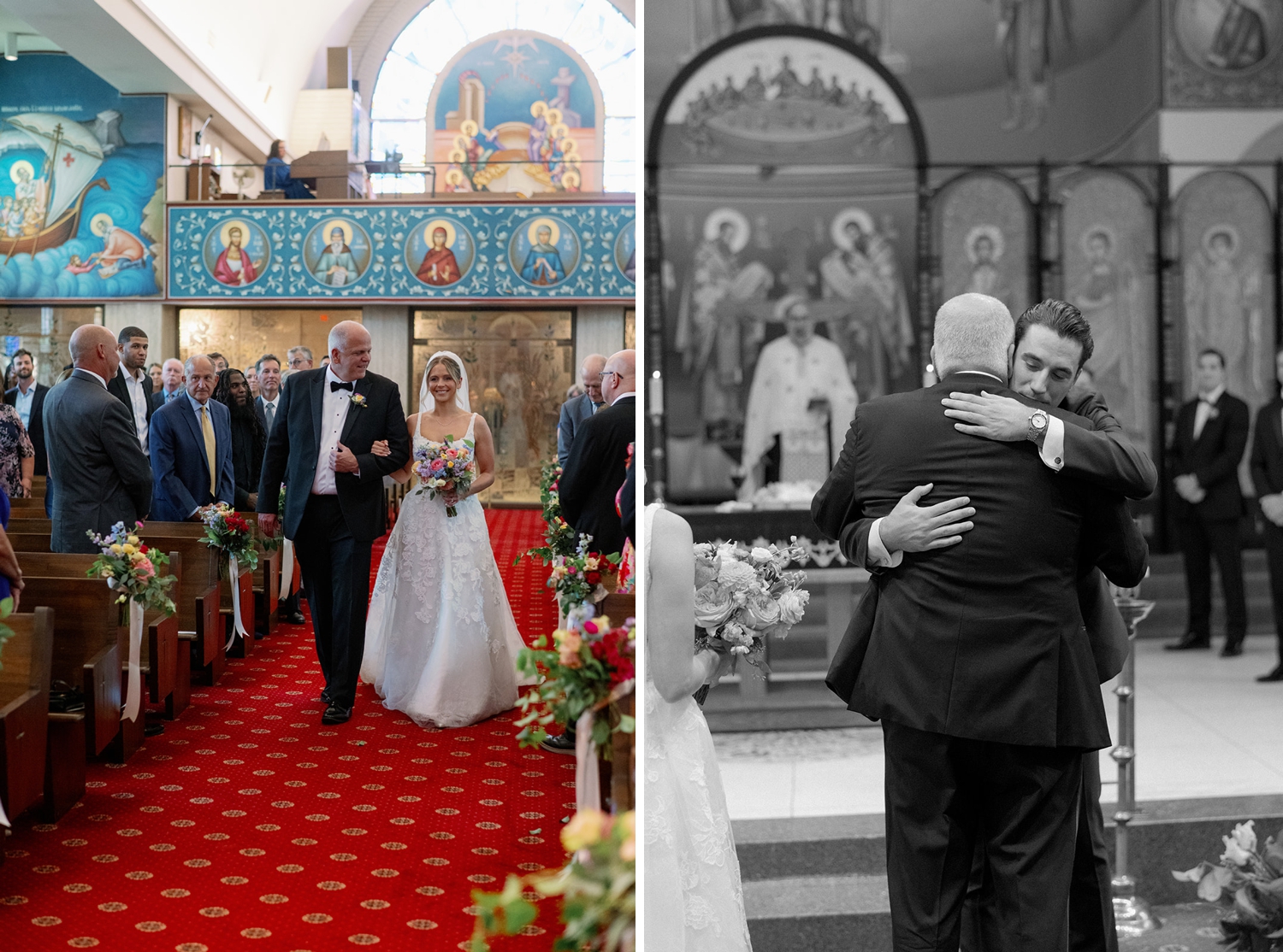 Grant: Grant agrees that the ceremony was extra special. It felt very special to commit to each other in front of our friends, family, and God. The beauty of the church, with the arching ceiling, the brightly painted icons, and the stained glass added to the moment. Our relationship with the priest also was an important part of our wedding ceremony.