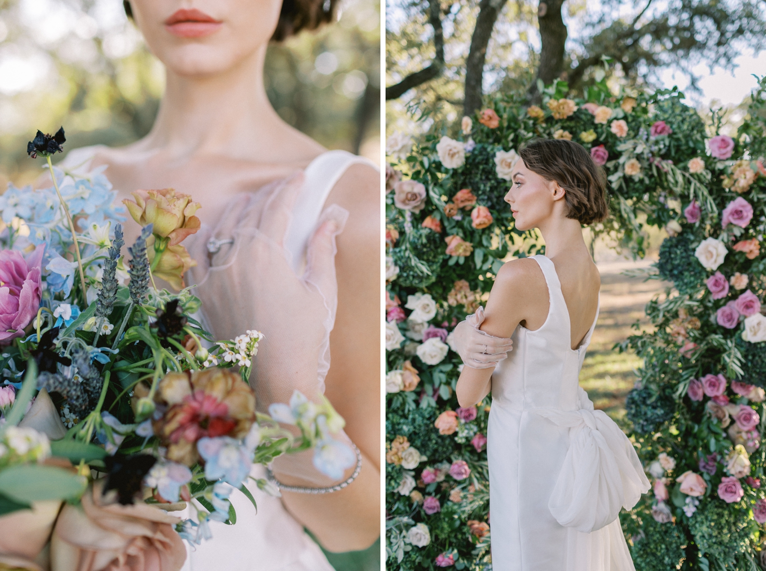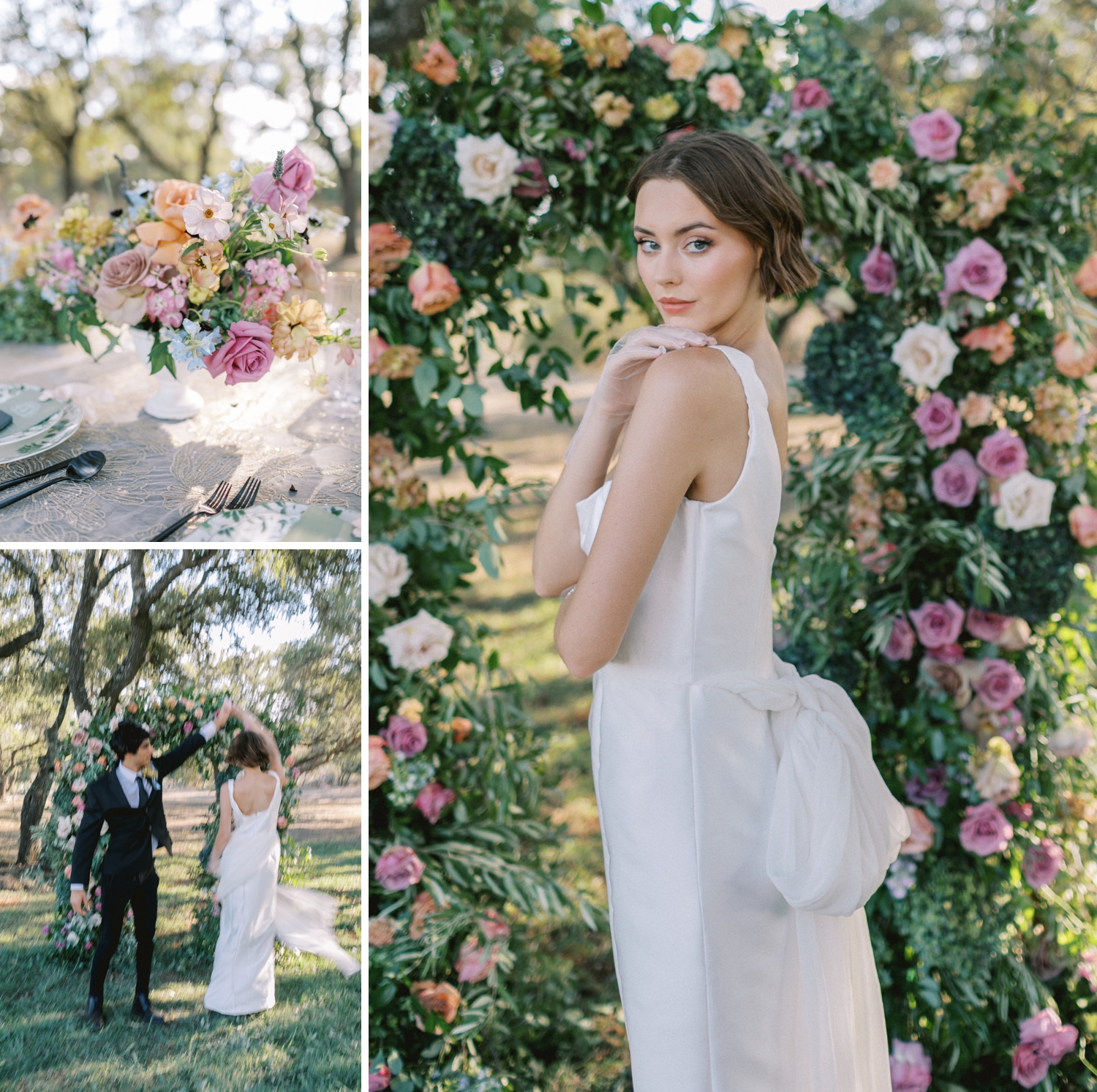 There’s a stillness to this editorial that feels almost cinematic — a quiet confidence wrapped in light and movement. Captured by Kelley Laws Photography at Windemere Farms, this private editorial explores a romantic tension between softness and structure, between wild florals and refined design. Every frame carries a whisper of old-world grace translated into the modern age.