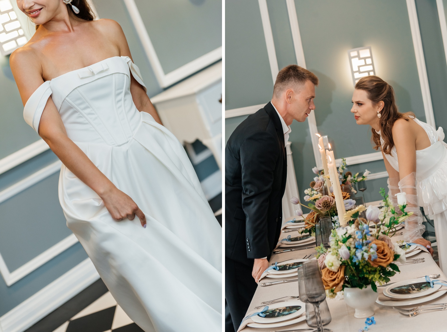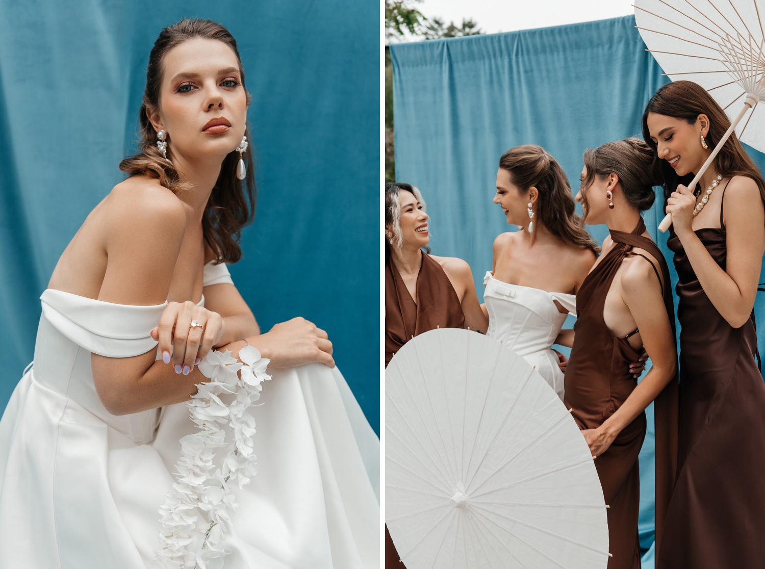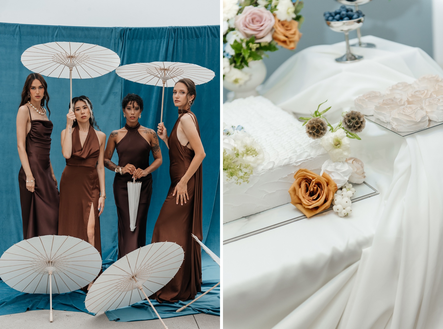From the softness of the gowns to the richness of the styling, this shoot is a study in balance – where light meets depth, and minimalism meets emotion. It’s the kind of inspiration that lingers, offering a fresh perspective on how understated color can still feel incredibly rich.