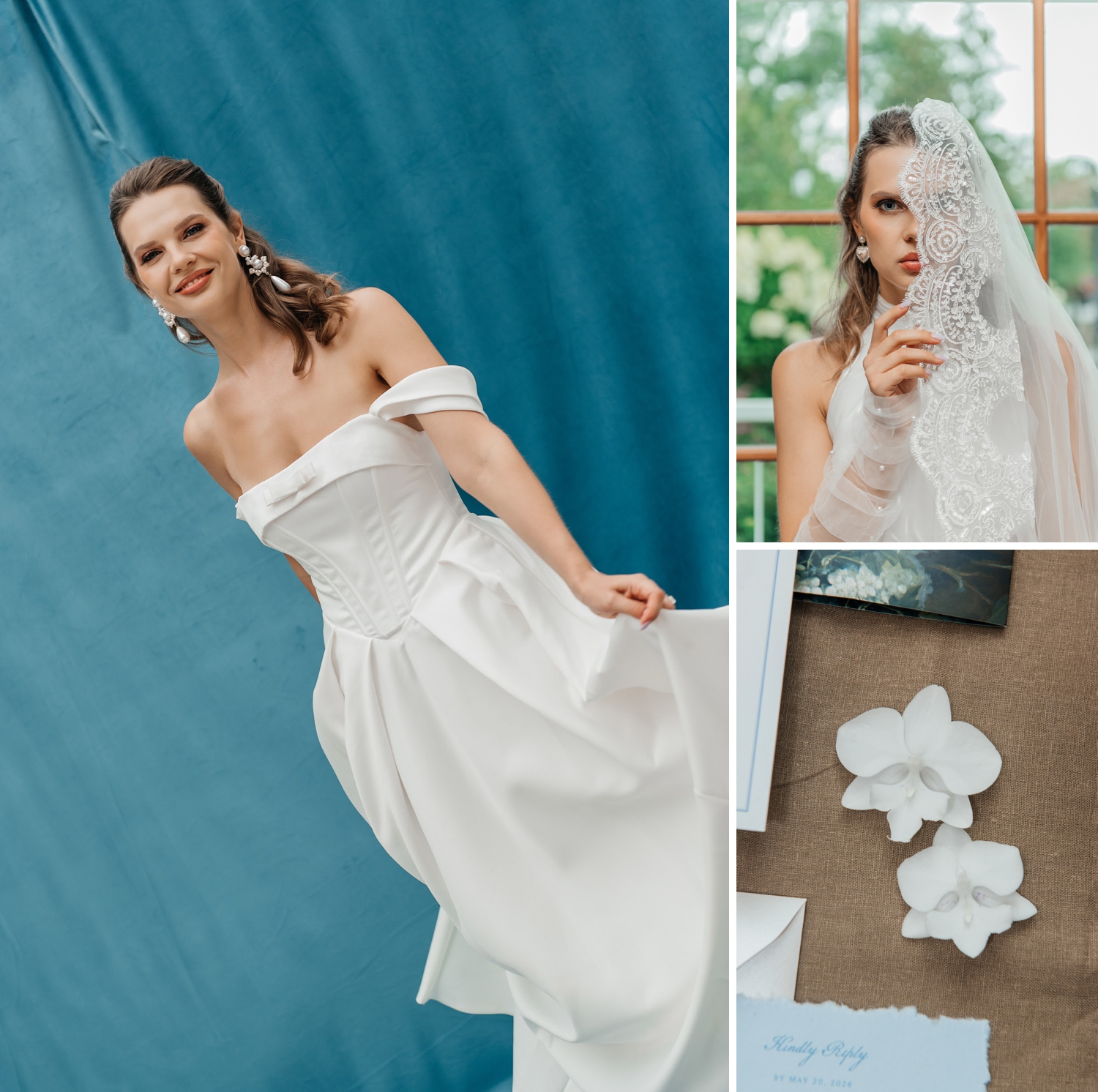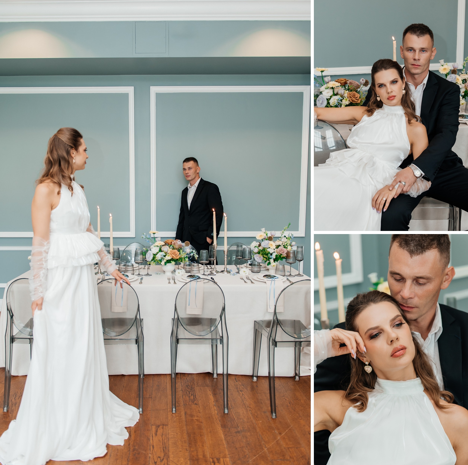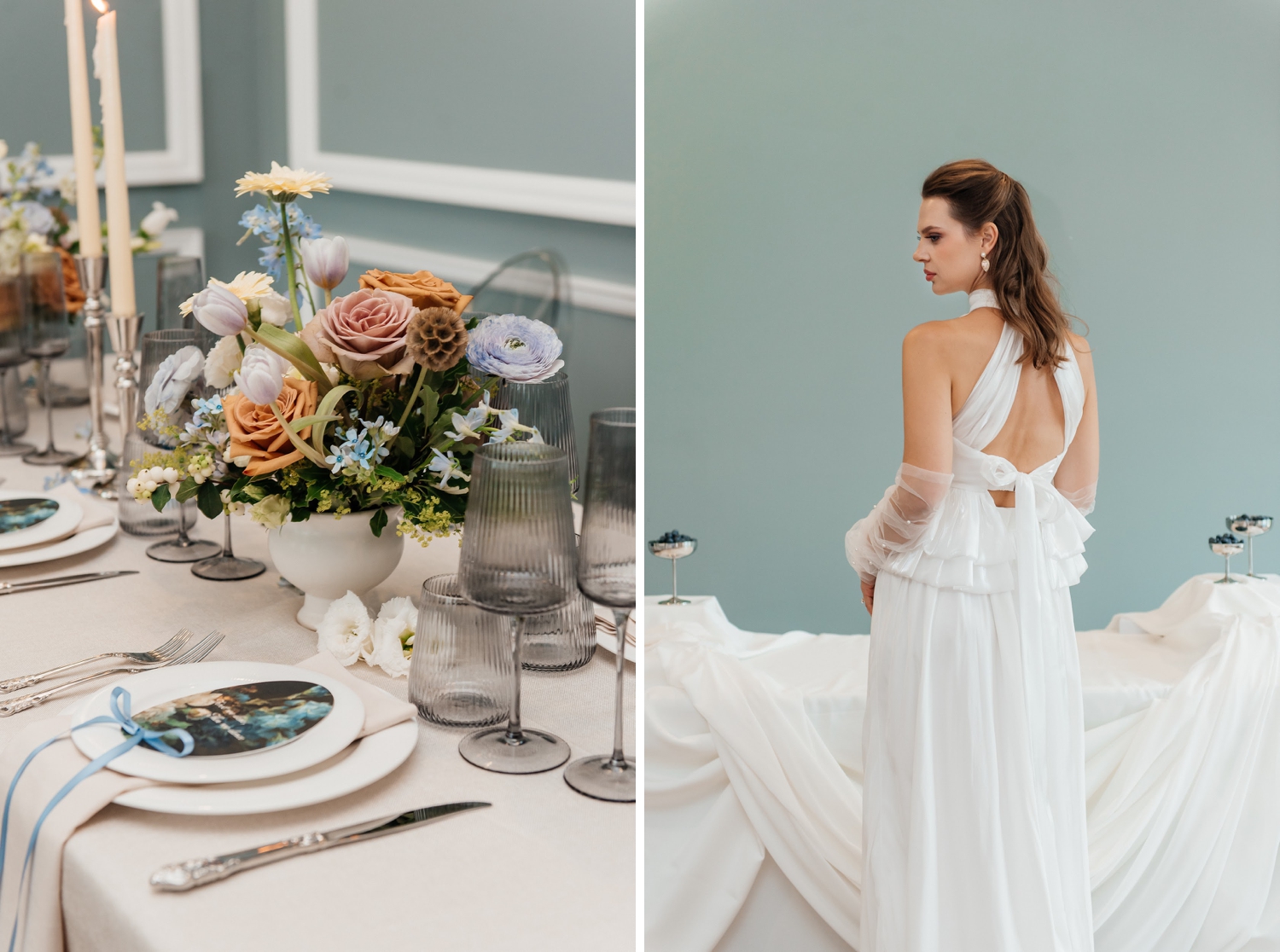 From the softness of the gowns to the richness of the styling, this shoot is a study in balance – where light meets depth, and minimalism meets emotion. It’s the kind of inspiration that lingers, offering a fresh perspective on how understated color can still feel incredibly rich.