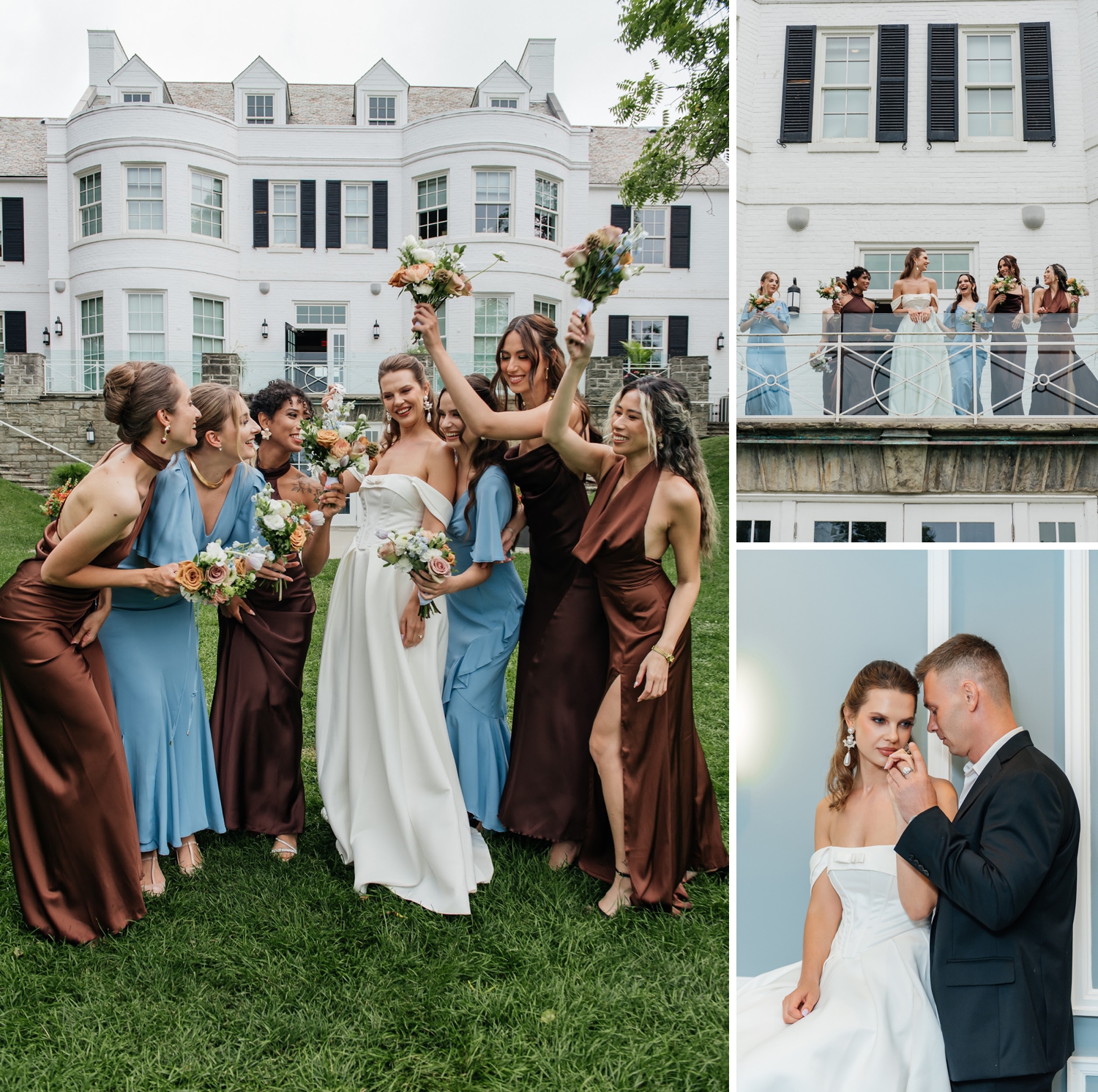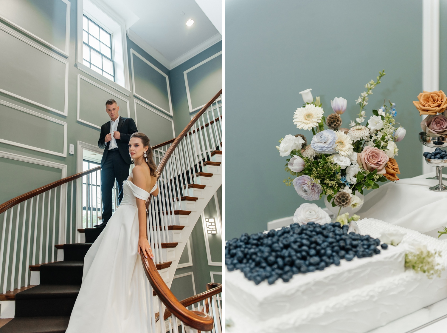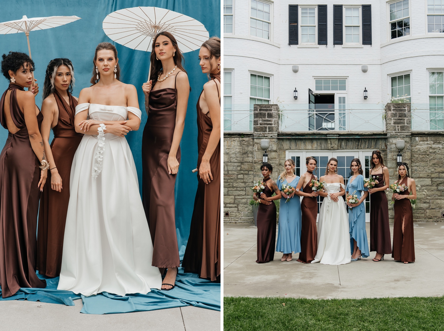 There’s a quiet kind of luxury found in restraint – in color palettes that whisper rather than shout, and in details that feel layered, intentional, and deeply tactile. This editorial, captured at the Harding Waterfront Estate, leans into that softness with a palette of airy blue tones grounded by rich cacao hues, creating a look that feels both modern and enduring.