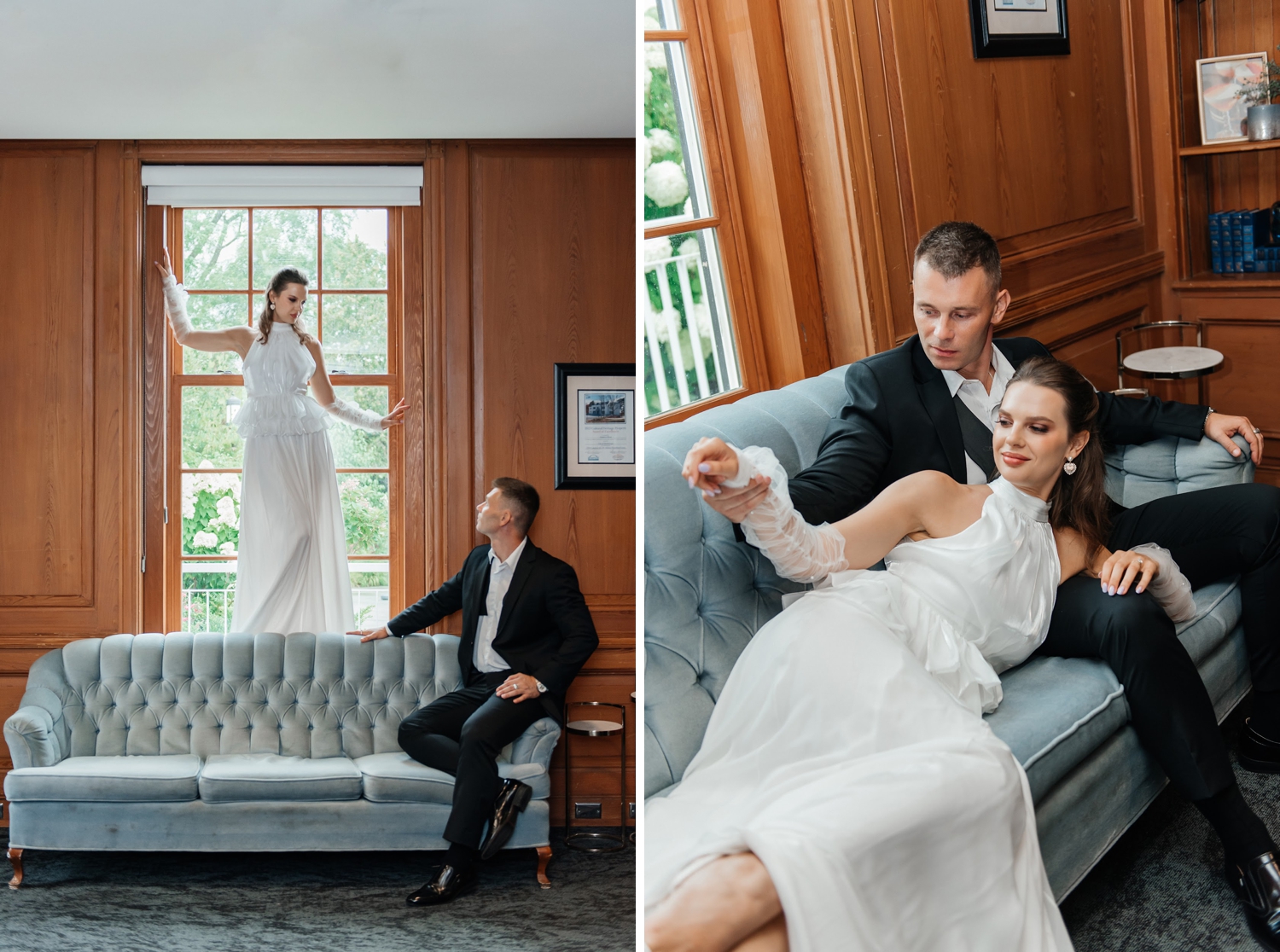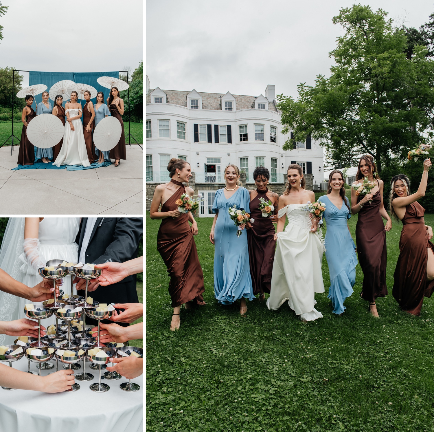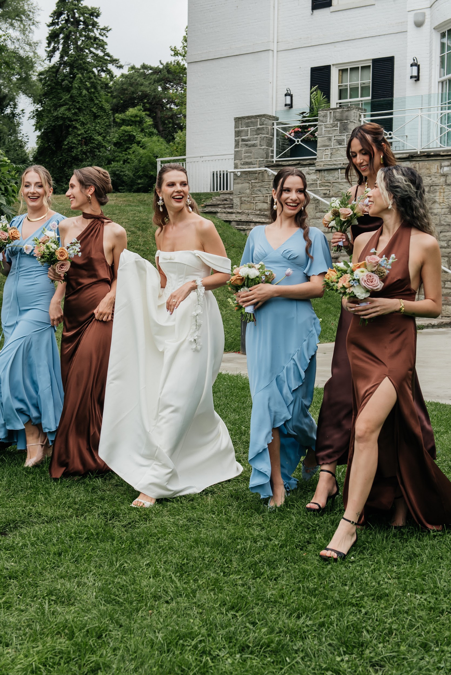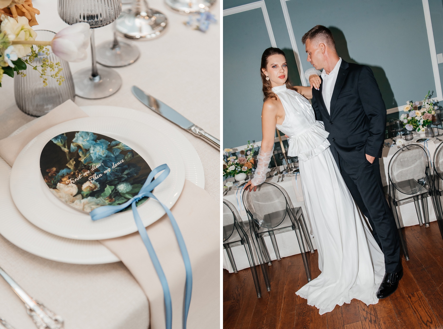 There’s a quiet kind of luxury found in restraint – in color palettes that whisper rather than shout, and in details that feel layered, intentional, and deeply tactile. This editorial, captured at the Harding Waterfront Estate, leans into that softness with a palette of airy blue tones grounded by rich cacao hues, creating a look that feels both modern and enduring.