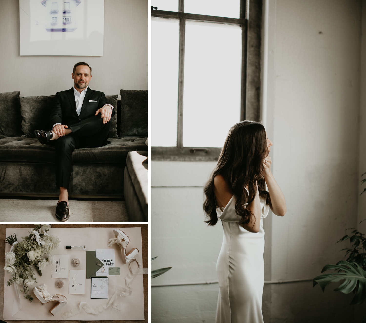 After eight years together, Taylor and Storm knew exactly what they wanted their wedding day to feel like: warm, grounded, joyful, and unmistakably them. From the moment the girls and mothers gathered in a sun-soaked green studio filled with plants, to a ceremony co-officiated by both of their fathers, every choice reflected care and meaning rather than tradition for tradition’s sake. Personal touches were layered throughout — private vows shared during their first look, custom-made rings (including Taylor’s moonstone engagement ring), and family woven into nearly every moment, from a brother walking his sister down the aisle to nephews tossing petals as flower boys.